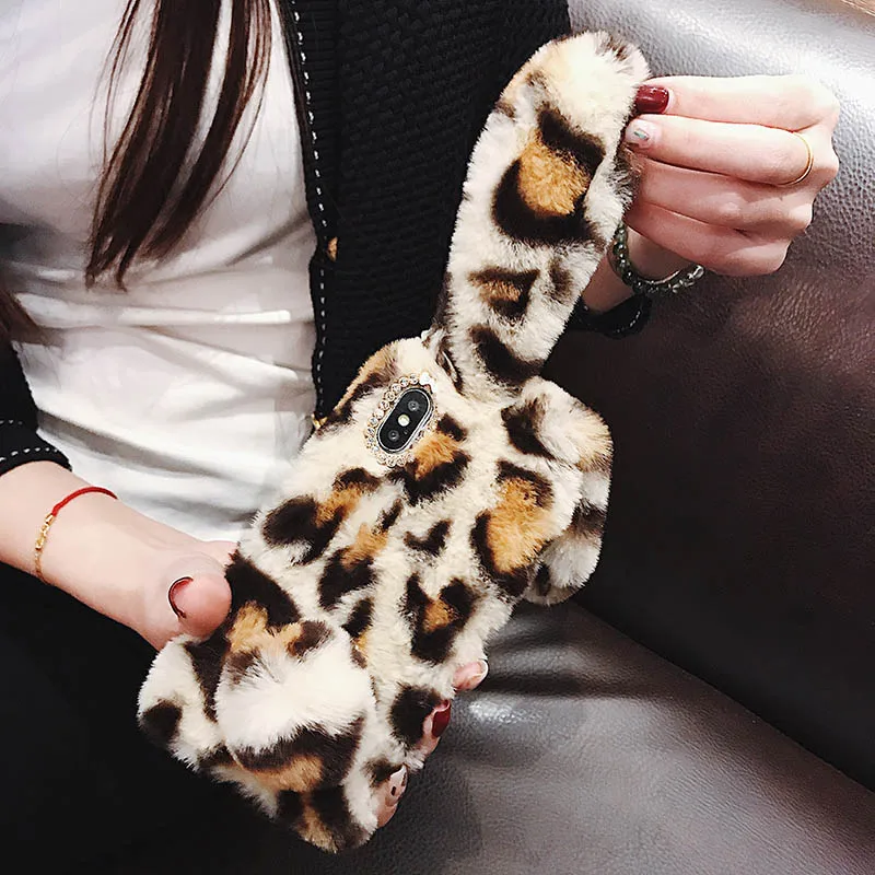 Модный теплый чехол с милым кроликом и пушистым леопардовым принтом...