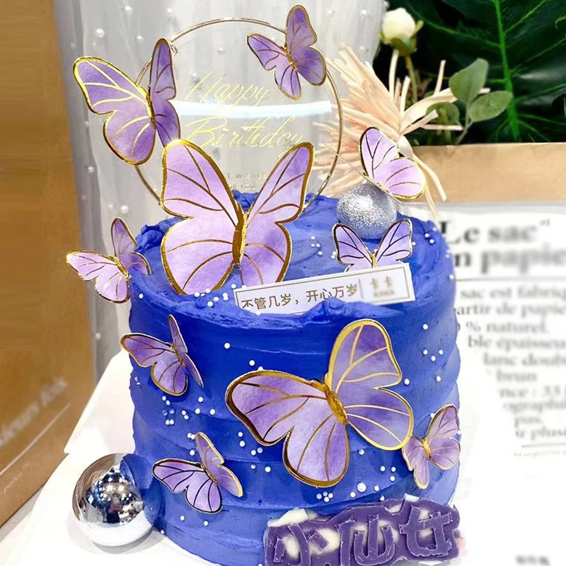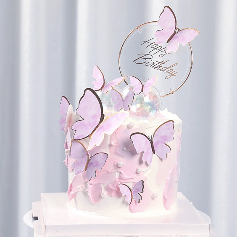 Ins Butterfly Топпер для торта С Днем Рождения розовый градиентный ...