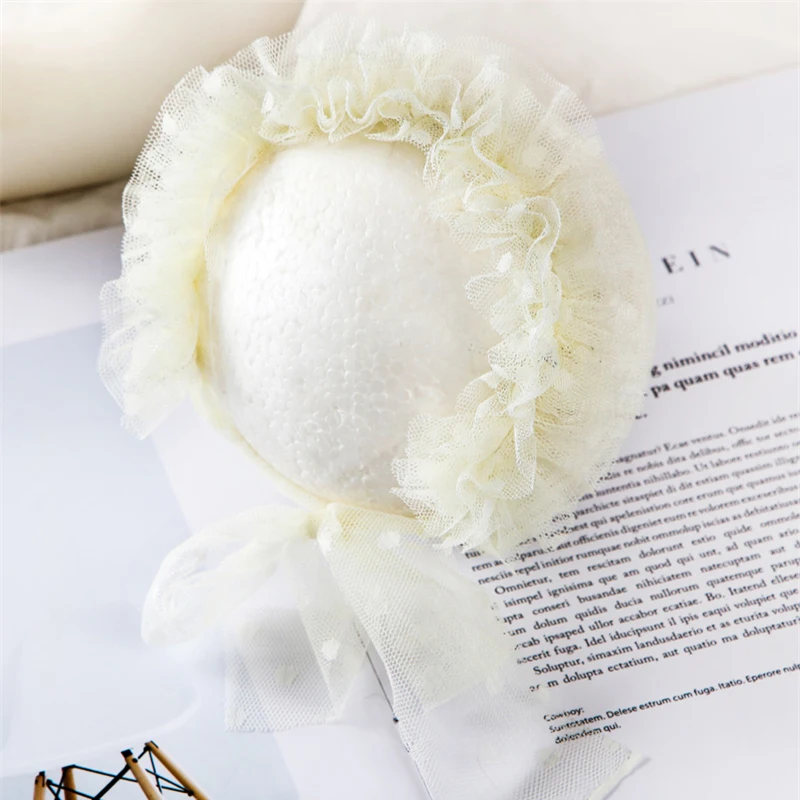 Кружевная шапочка для новорожденных принцесс, пушистая кружевная шапочка, винтажный реквизит для фотосъемки младенцев, аксессуары, студийный головной убор