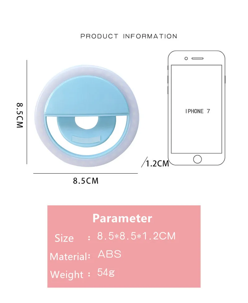 Особенности: 1. 100% новый и высококачественный 2. Идеальное дополнение к вашим смартфонам, если требуется безупречная съемка изображения. 3. Профессиональные принципы оптики + лучший выбор материалов, которые делают светильник излучаемым равномерным, сбалансированным свечением и мягким для ваших глаз 4. 3 уровня яркости: можно Короткое нажатие на выбор, все виды доставки подойдут 5. Хорошо разработанная цветовая температура готова придать вам отбеленную, розовую красоту лица 6. Высококачественное светодиодное кольсветильник с 36 светодиодами 7. Легкий и достаточно маленький, чтобы взять с собой куда угодно 8. Функция: заполняет светильник во время селфи ночью, в темноте или в любых местах с низкой яркостью 9. Кольцевой светильник с регулируемой яркостью и тремя режимами светильник 10. Популярная Совместимая модель iPhone: iPhone 3G / 3GS, iPhone 4, iPhone 4S, iPhone 5, iPhone5c, iPhone 6, iPhone 6 Plus, IPhone 6 S, IPhone 6 S Plus, iPhone 5s, Iphone SE, Iphone 7, Iphone 7 Plus Iphone 8 X и многое другое! 11. Популярная Совместимая модель телефонов на базе Android: Xiaomi, Samsung, Huawei,Asus,Sony,LG,ZTE,Vivo,Oppo,Lenovo... 12. Подходит для многих Ipad. Спецификация: Цвет: белый, черный, синий, розовый