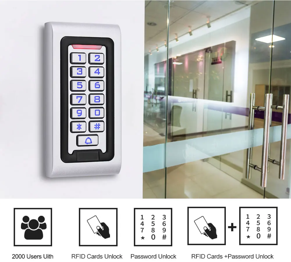 Поддержка пароля, карты RFID, пароля + карты RFID для открытия двери. Поддержка 2000 пользовательских карт, 4-значного пароля, функции копирования даты помогут сэкономить время на программирование.
