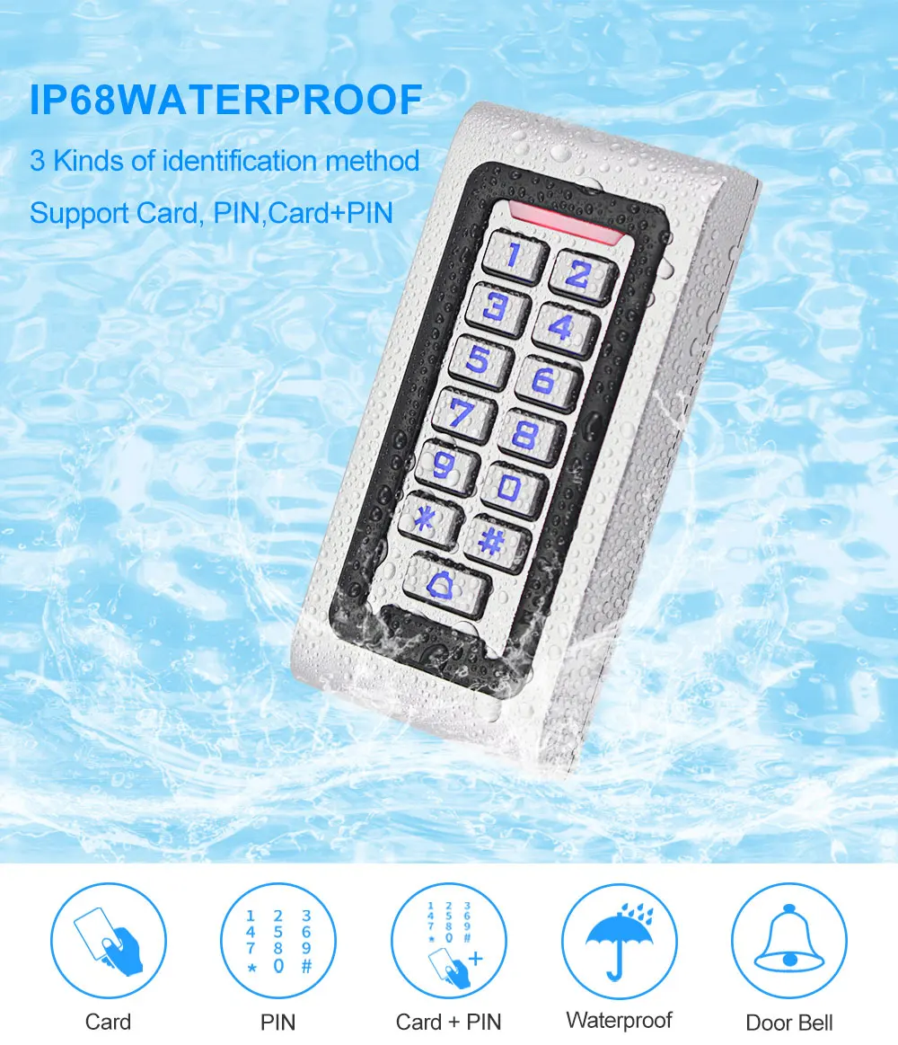 Контроллер доступа, металлический, водонепроницаемая, IP68, Wiegand, 26 бит, Брелок 125 кГц