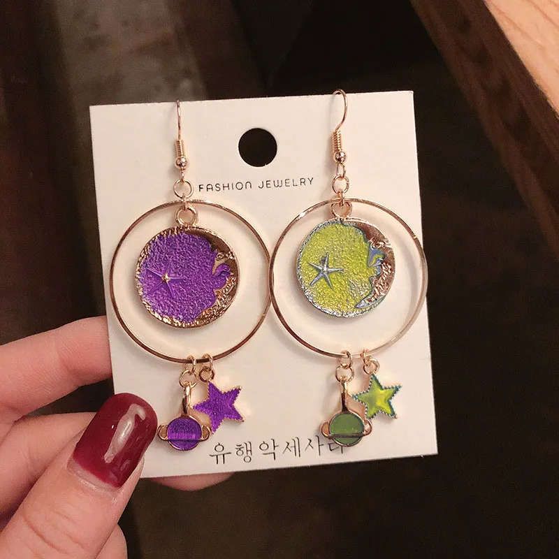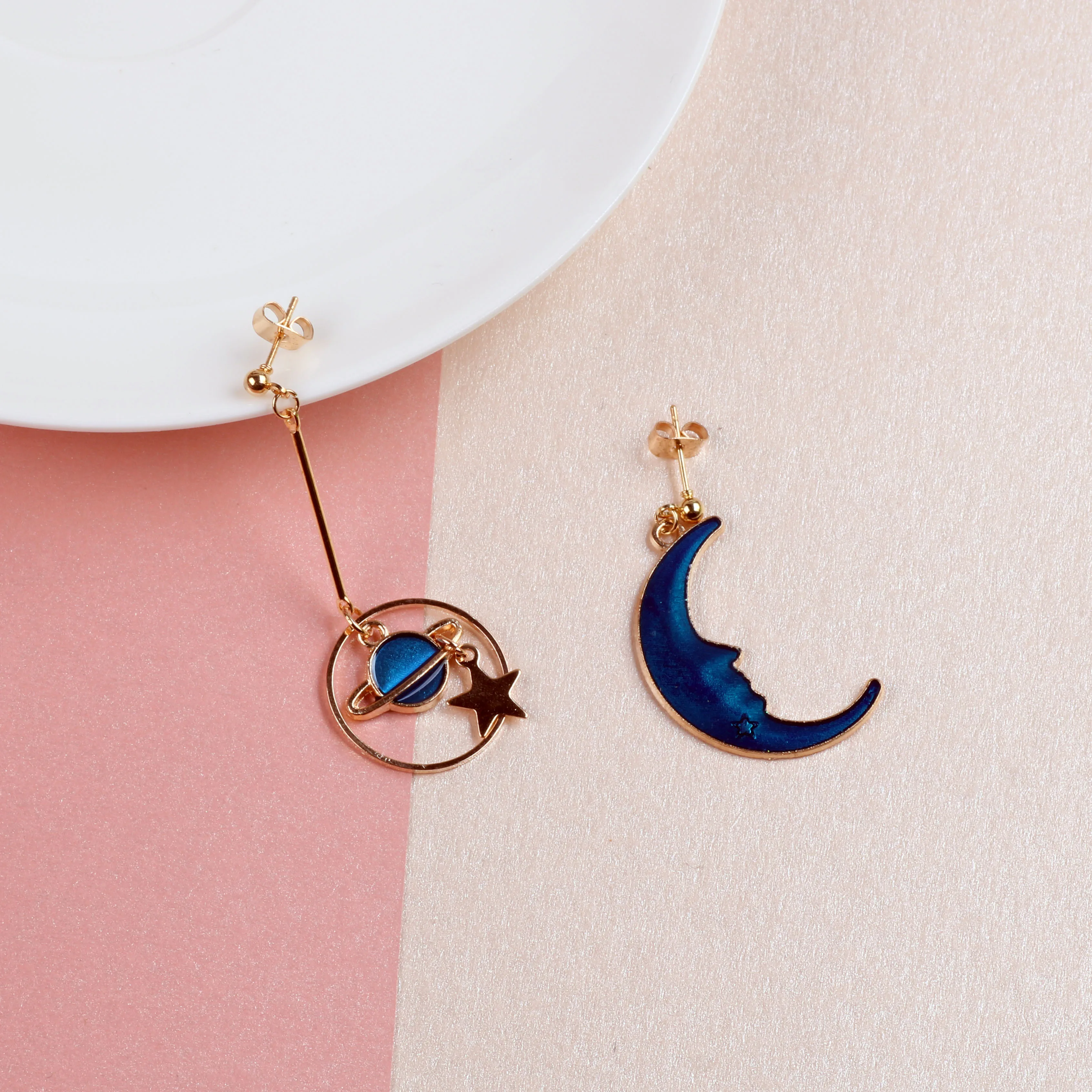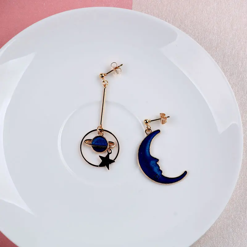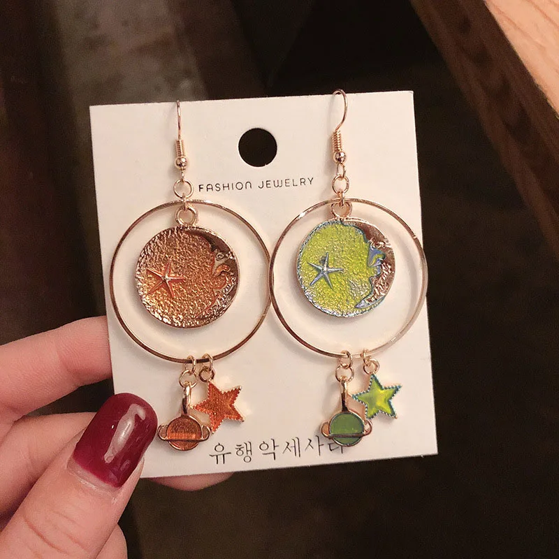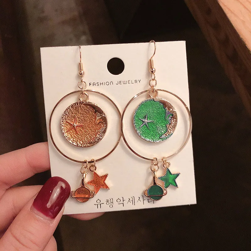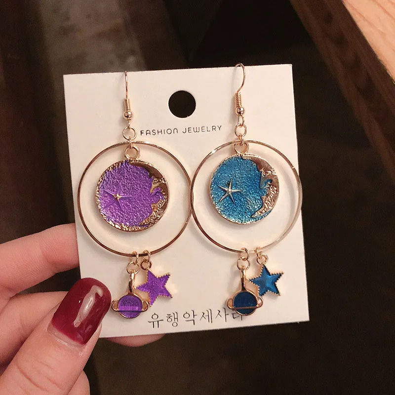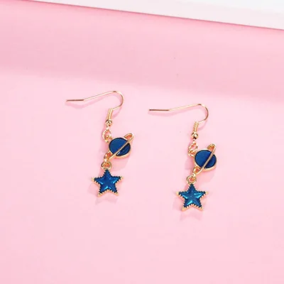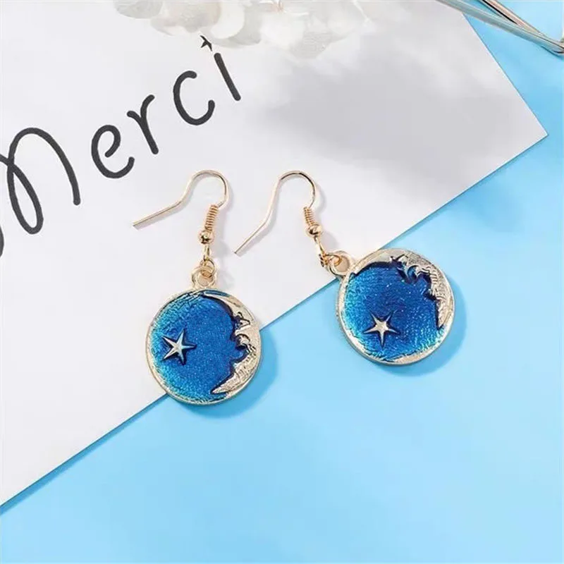 Женские длинные серьги золотистого цвета, длинные серьги с изображением голубого космоса, Вселенной, Луны, звезд, планеты, 2020