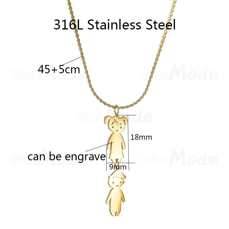ELSEMODE, персонализированные подвески с именем для детей, золотые ожерелья из нержавеющей стали, для мальчиков, девочек, сынов, дочери, детские подарки