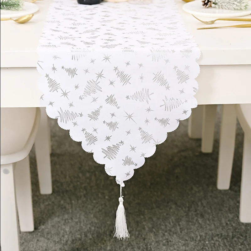 Рождественская настольная дорожка 35*180 см, белая настольная дорожка со звездами для рождественской елки, рождественские украшения для дома, Новогоднее украшение для стола