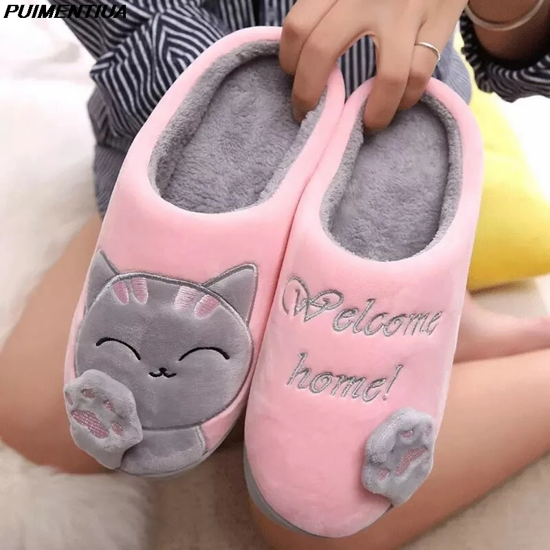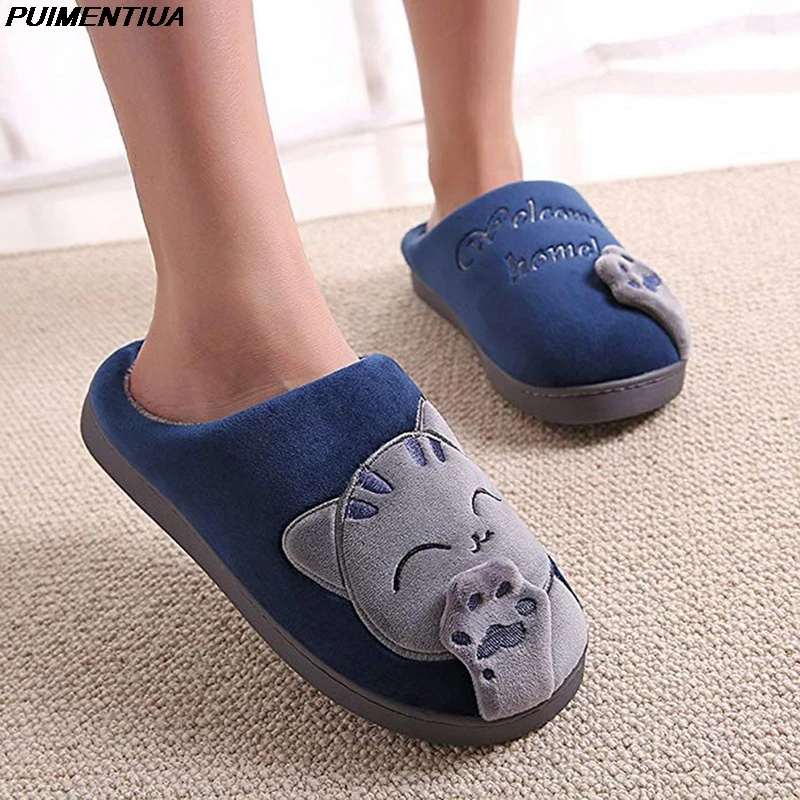 Прямая поставка; Женские зимние домашние тапки унисекс Кот домашняя обувь с нескользящей подошвой; Зимние теплые домашние тапочки с Обувь для пары