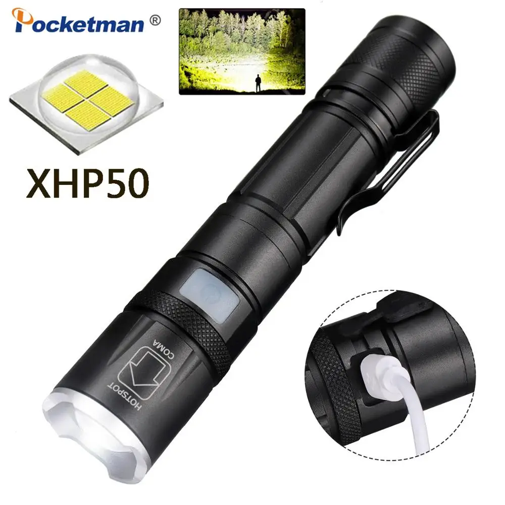 Фонарик с увеличением XHP50, фонарик, сильный светодиодный фонарик, уличный Многофункциональный портативный фонарик с держателем ручки