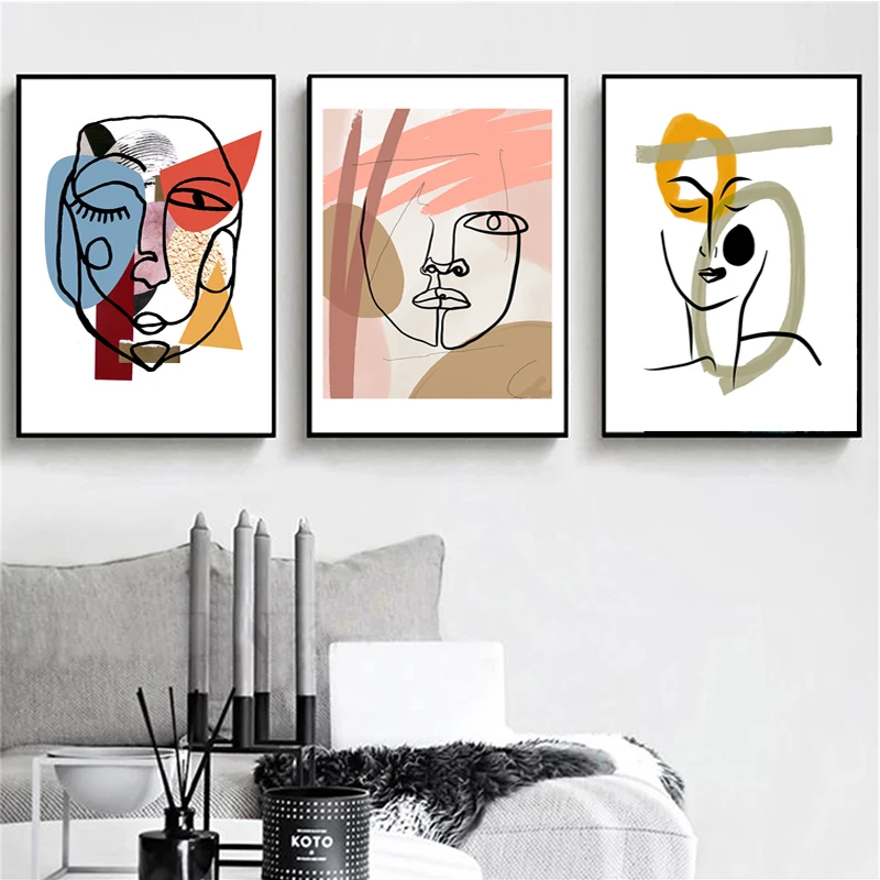 Линия цветной блок девушка абстрактные лица скандинавские плакаты и принты настенная живопись холст настенные картины для гостиной домашний декор