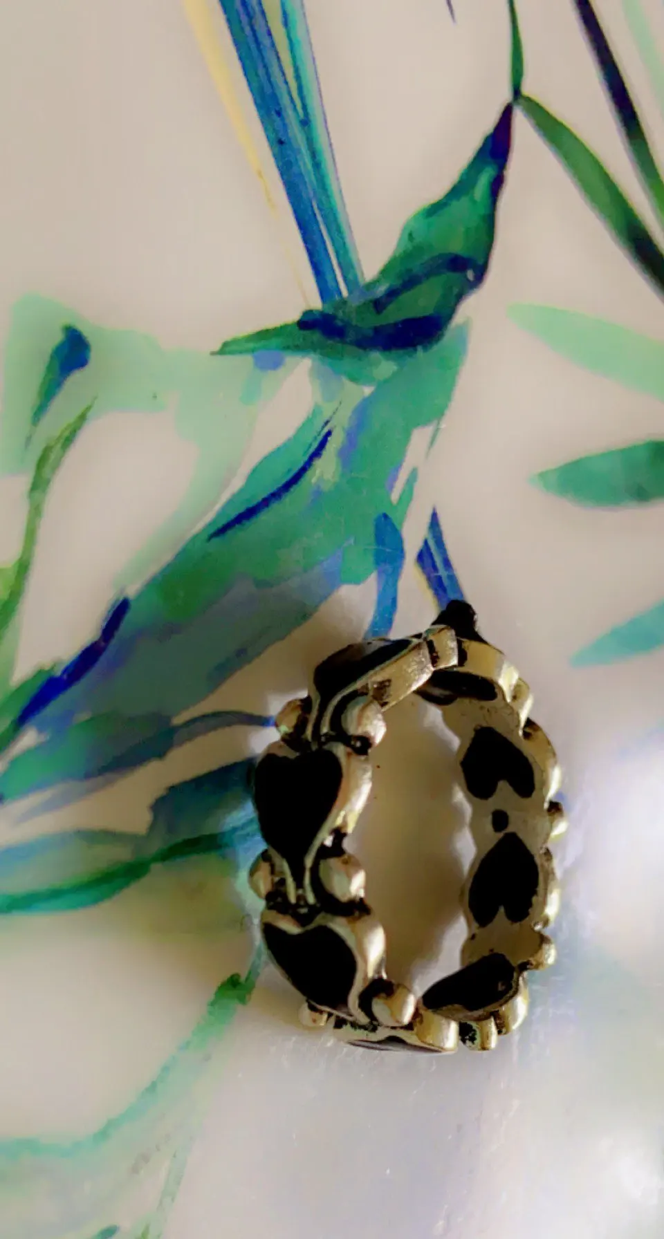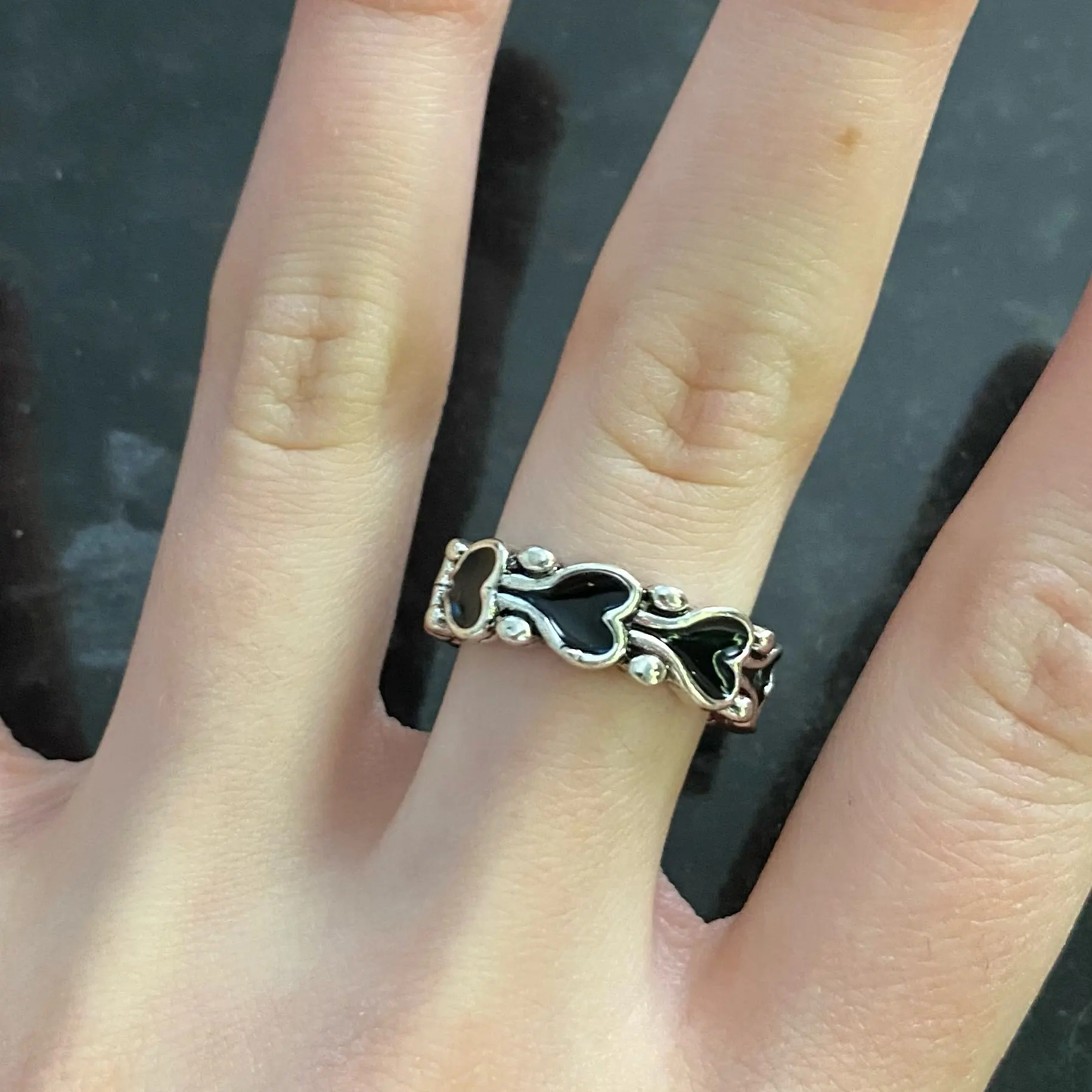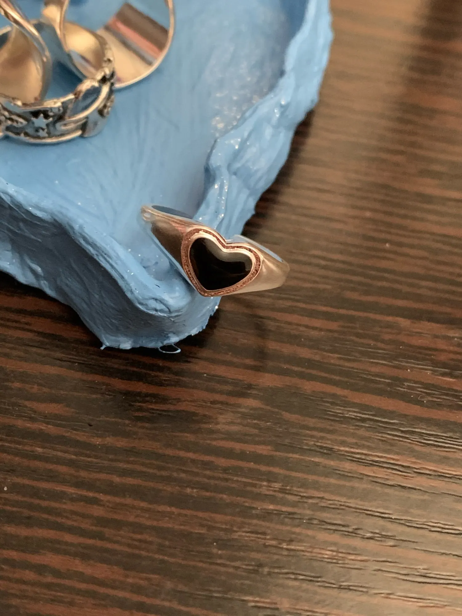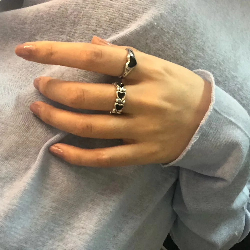 норм, но не сказала бы что очень качественное черное кольцо, колечко с сердечками не регулируется в отличие того, что с цветочками, размер примерно 16-16.5, на мой безымянный как раз