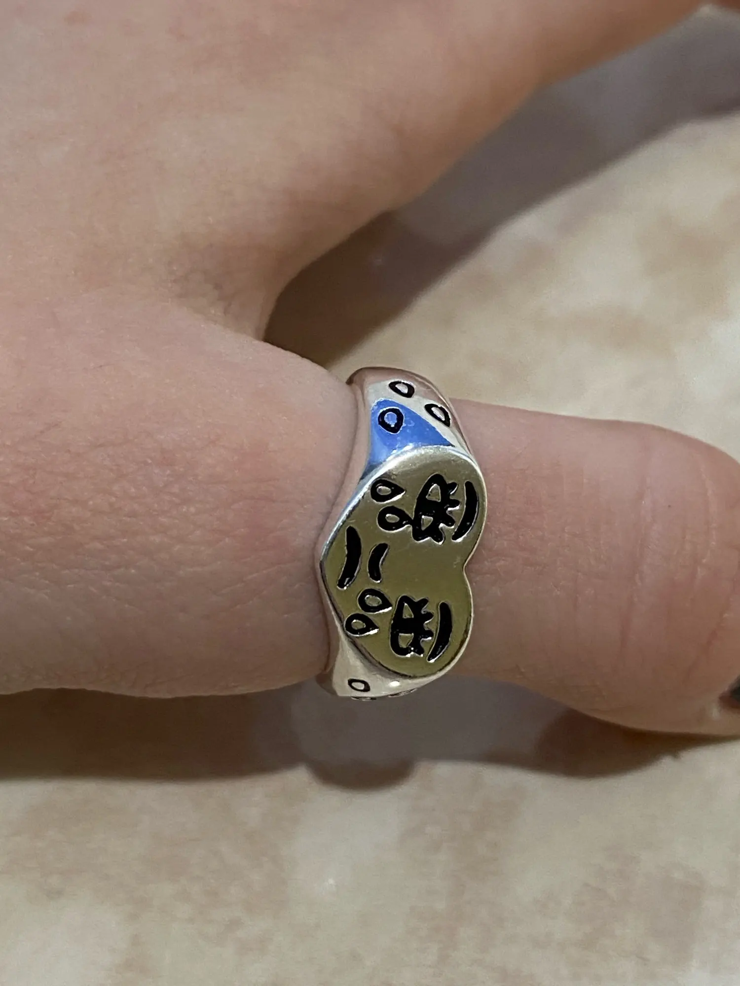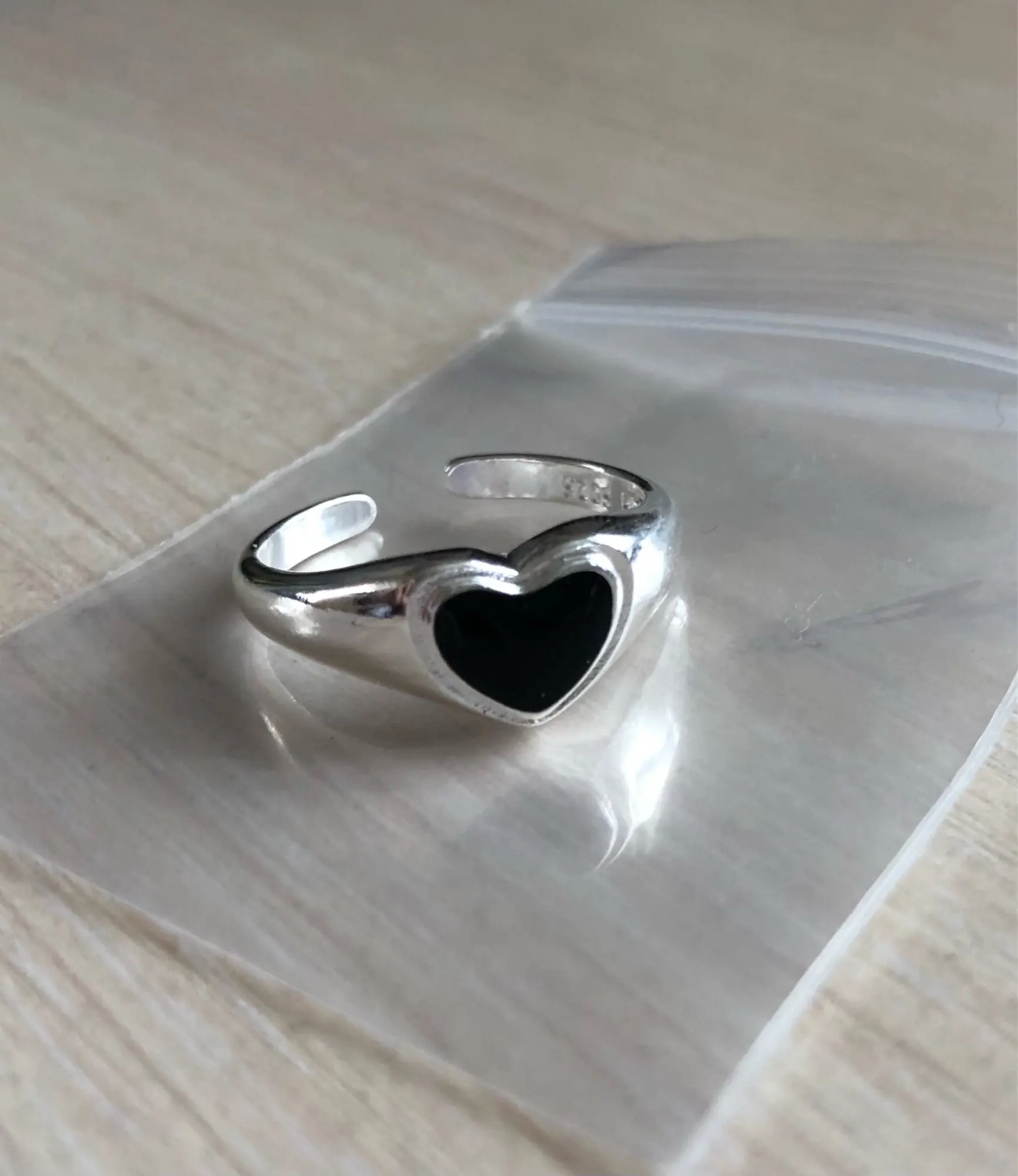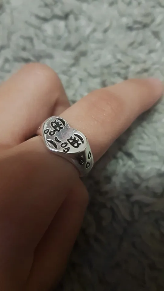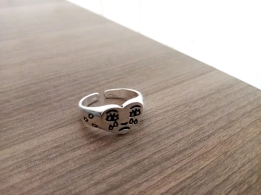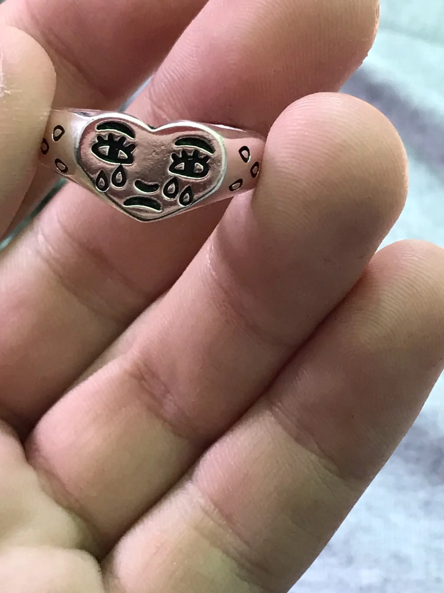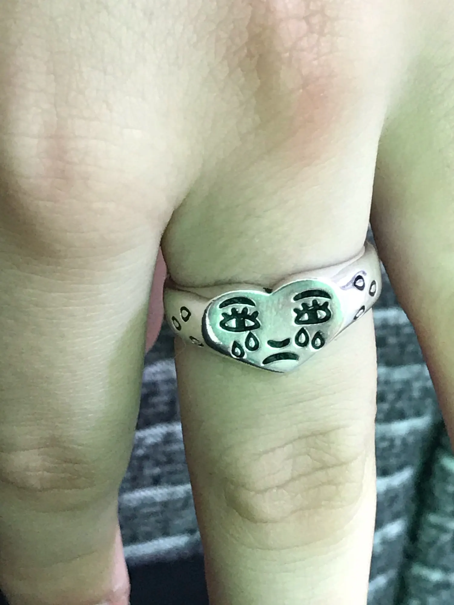 Item came quicker than expected the ring is adjustable and comfortable. Love sad heart. :( :))))