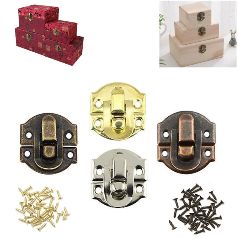 2 шт. античный металлический замок, сундук для ювелирных изделий, Подарочная деревянная коробка для вина, декоративный навесной замок, защелка с винтами, мебельная фурнитура