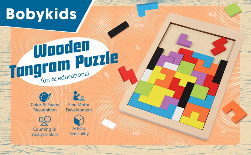 Эта деревянная головоломка Танграм действительно красочна. Он очень хорошо окрашен, поэтому цвет древесины совсем не выходит. Также Все пазлы идеально подходят, и нет никаких проблем с установкой по-разному. Эти деревянные пазлы и доска очень прочные, что при падении на пол детали не разбиваются.Пусть пазл впечатлит вас и насколько он прочный и красочный.