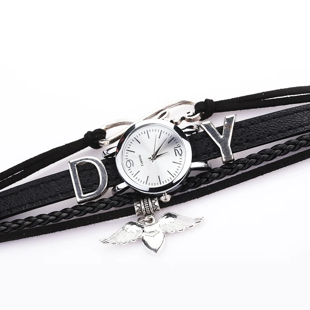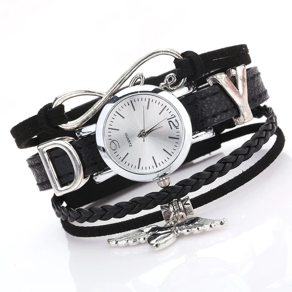 Часы наручные женские кварцевые с серебристой подвеской в виде сердца, модные, с кожаным ремешком