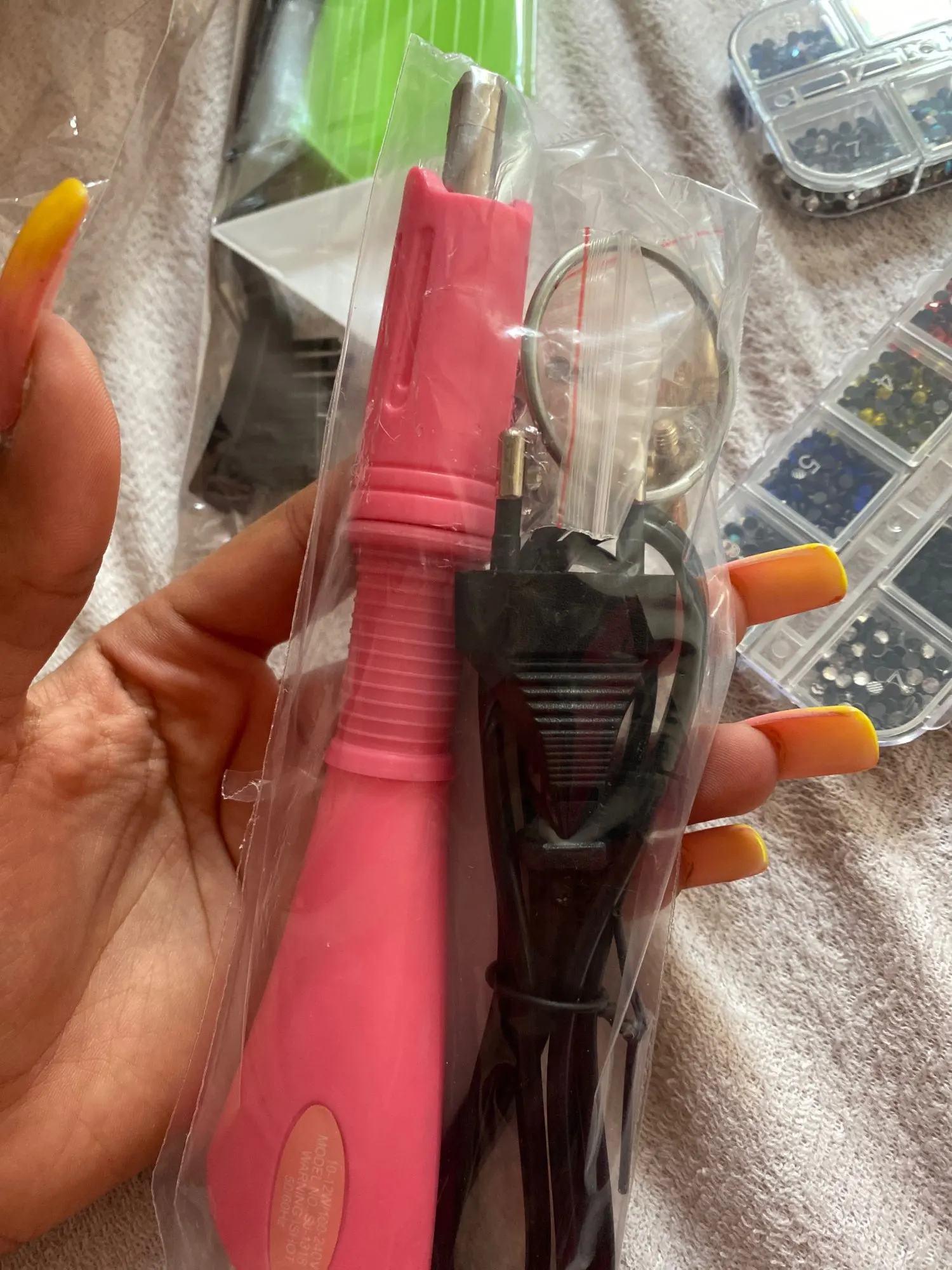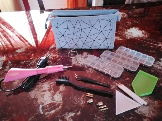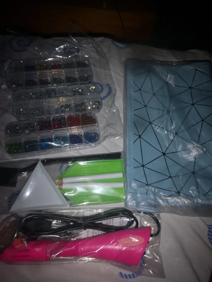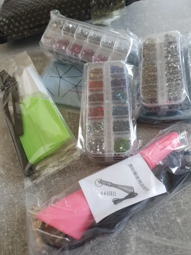 Быстро пришёл, в отличном состоянии, всё как и ожидалось, без сюрпризов). По отдельности бы не получилось купить столько различных страз разных цветов за такую цену. Паяльник сделан достойно, корпус из прочного АВС пластика, насадки закручиваются и снимаются легко. Стразы хорошие. Простые белые показались немного мутноватые, а вот которые с покрытием сияют всеми цветами). Косметичка серо-голубого цвета и матовая, хотя на картинке казалась серебристой)) Но мне нравится, это удобно, она вместительная и устойчивая. Вцелом 5 с плюсом продавцу.