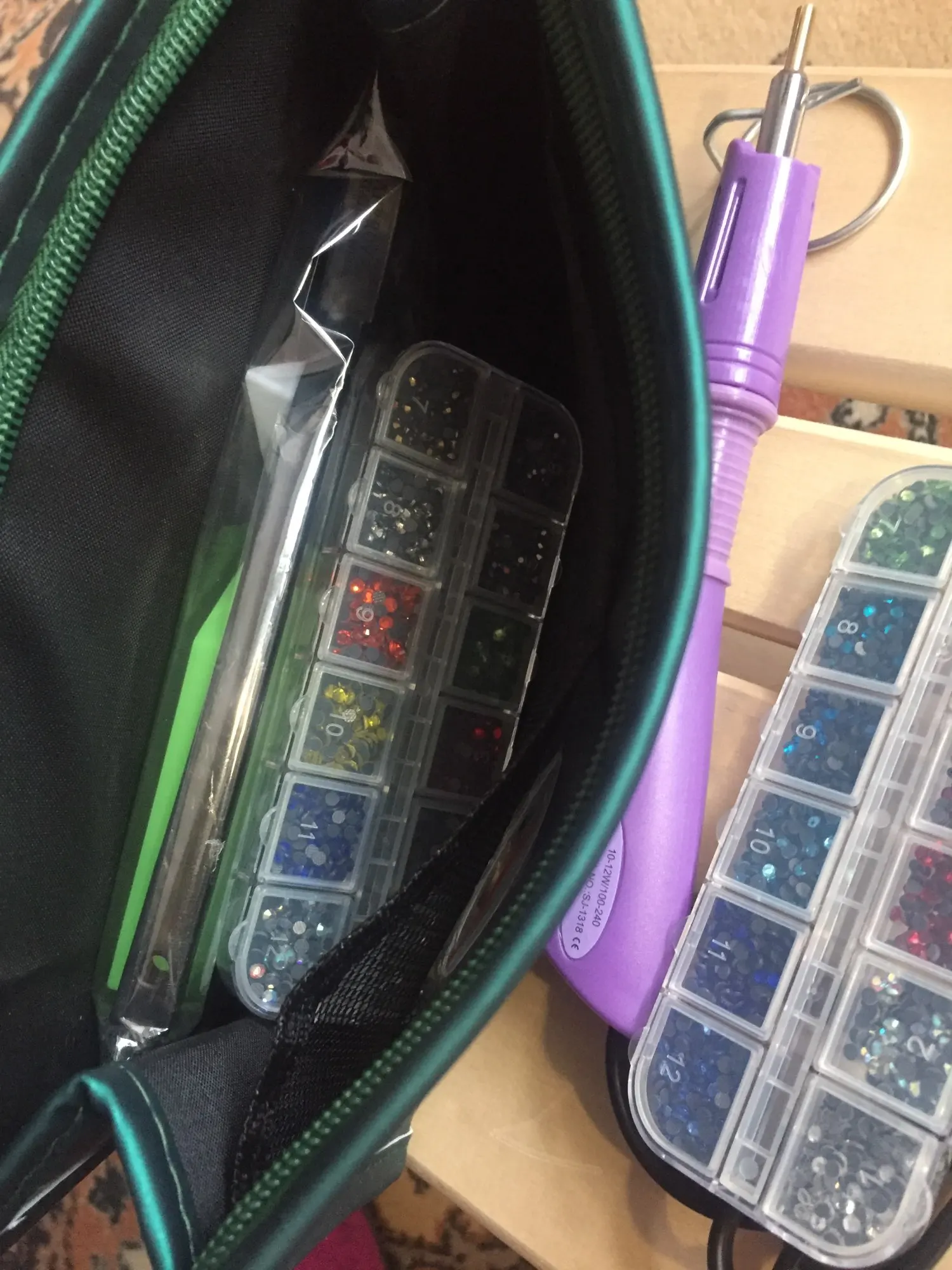 Посылка дошла за 10 дней до ХМАО, все хорошо упаковано. Стразы красивые, косметичка качественная, в деле еще не пробовала.