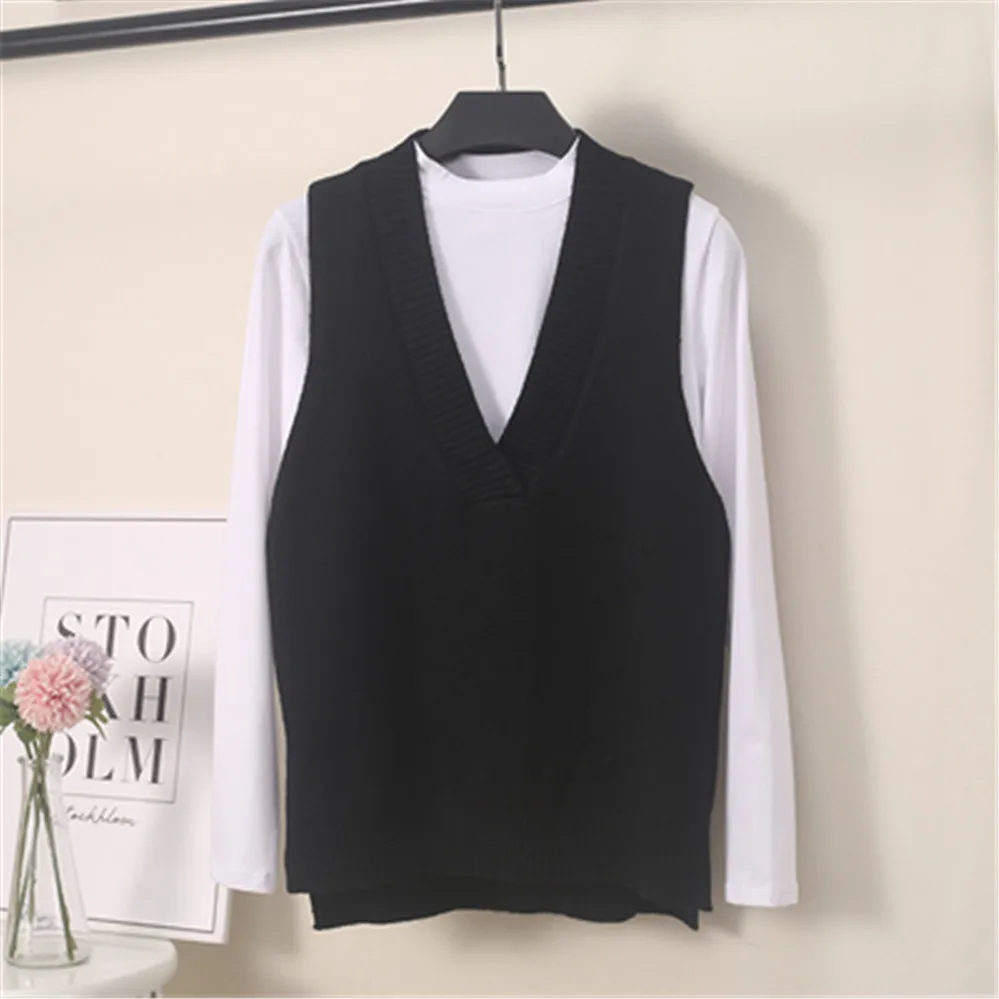 Женский шерстяной жилет, вязаный жилет без рукавов с V-образным вырезом, длинный жилет с секциями, весна-осень 2020