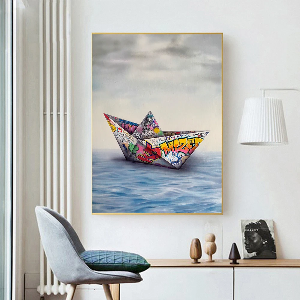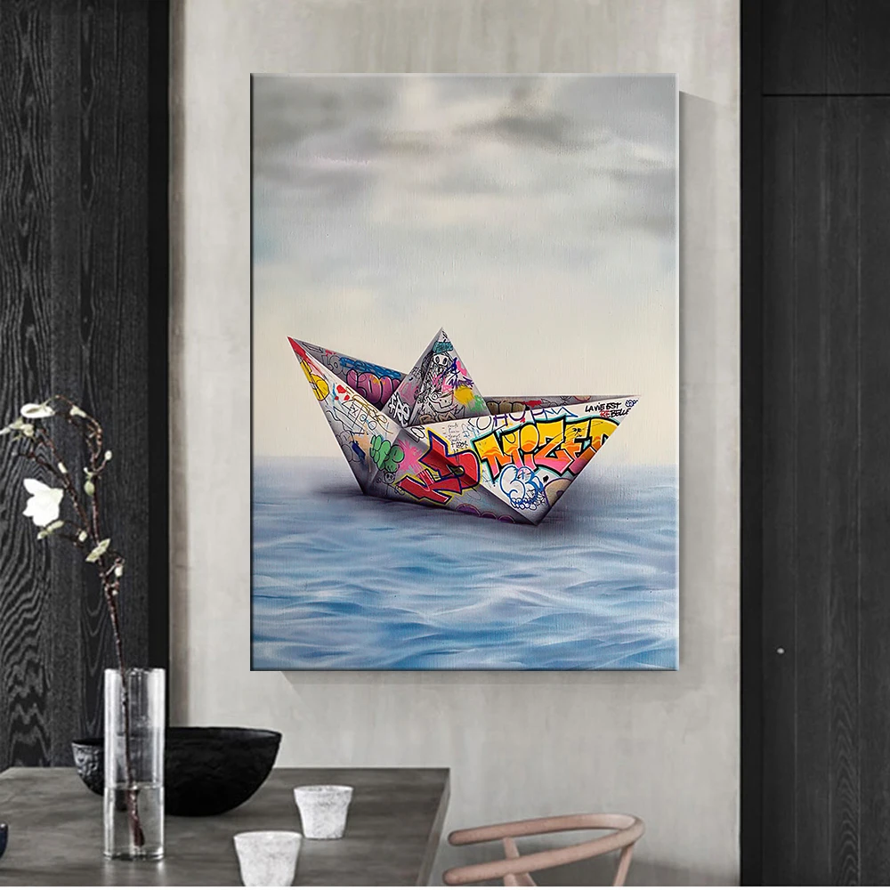 Бумажные оригами лодка граффити настенное искусство холст живопись плакаты и принты настенные картины для гостиной Куадрос украшение для дома icon star icon star icon star icon star icon star