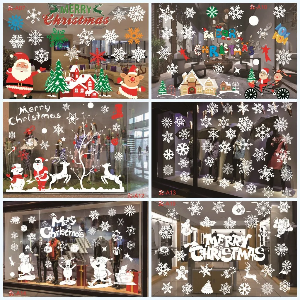 Рождественские украшения для дома, 2021, наклейка на стену на окно,...