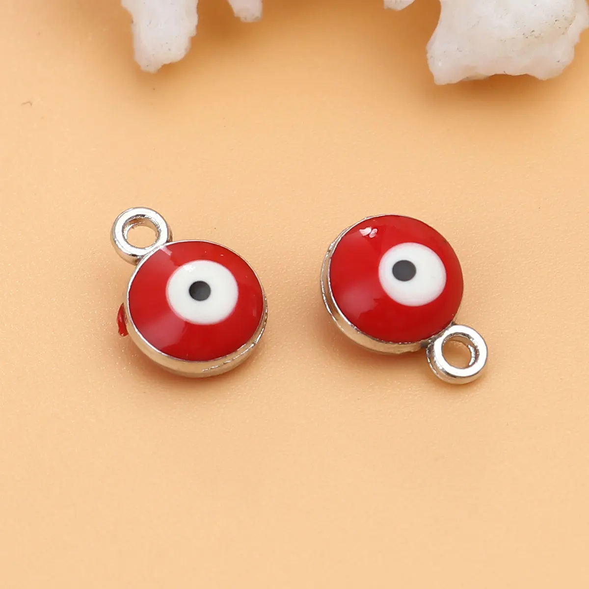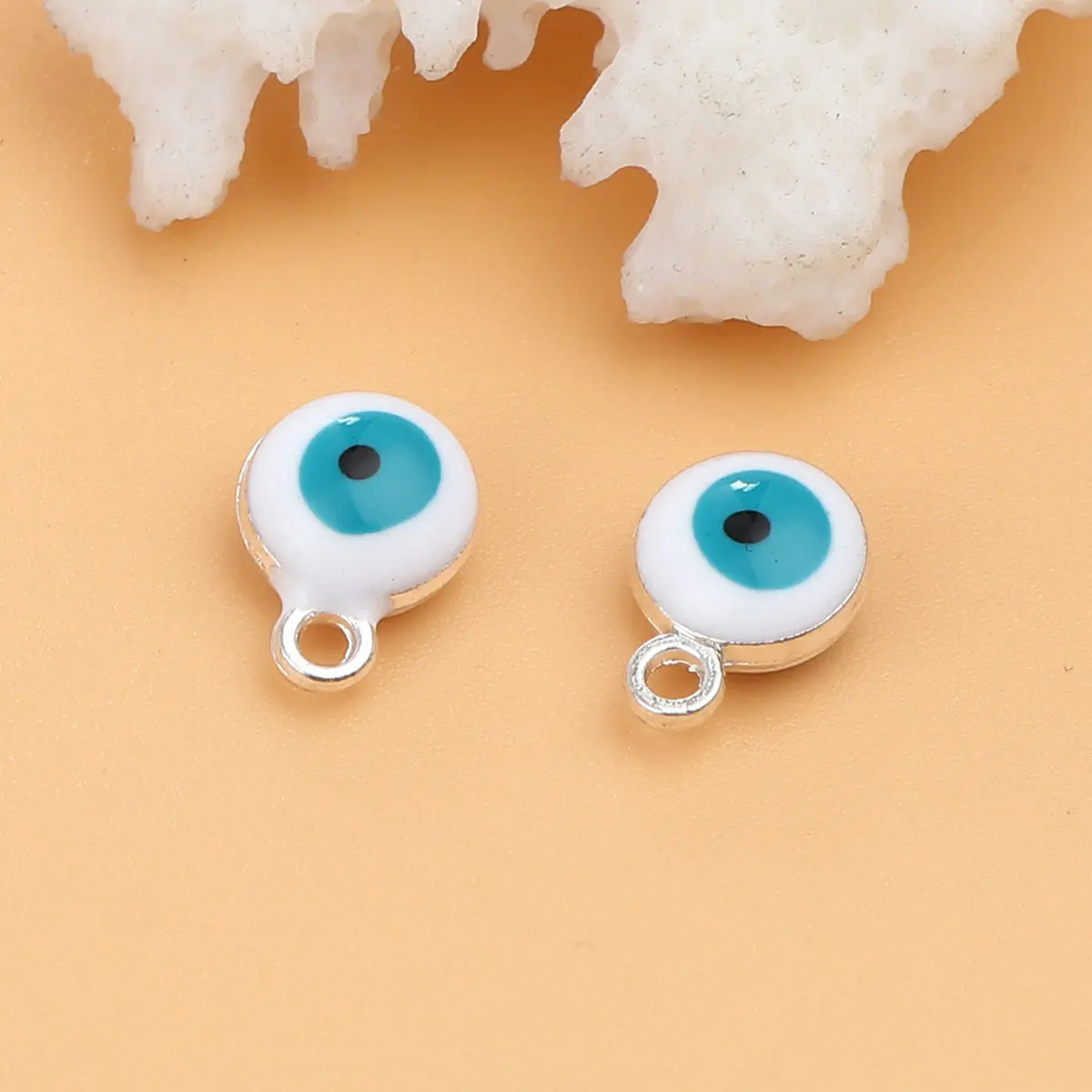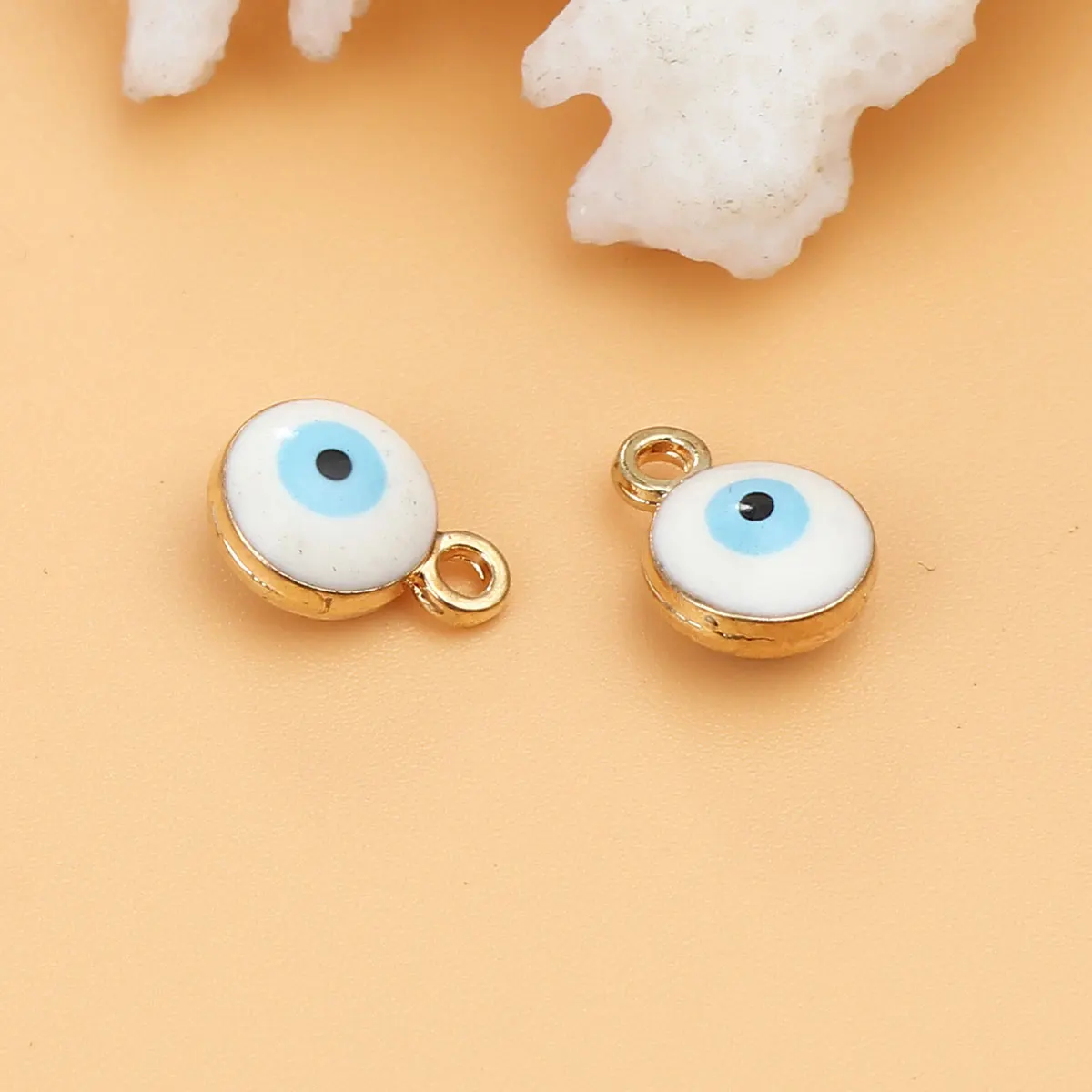 Эмалевые шармы от сглаза 20 шт., религиозные круглые шармы из цинкового сплава золотого и серебряного цвета для изготовления ювелирных изделий своими руками, 9*7 мм