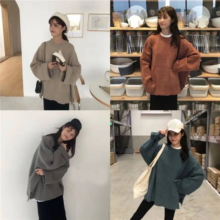 Зимний женский свитер, новинка, свитер в Корейском стиле, однотонны...