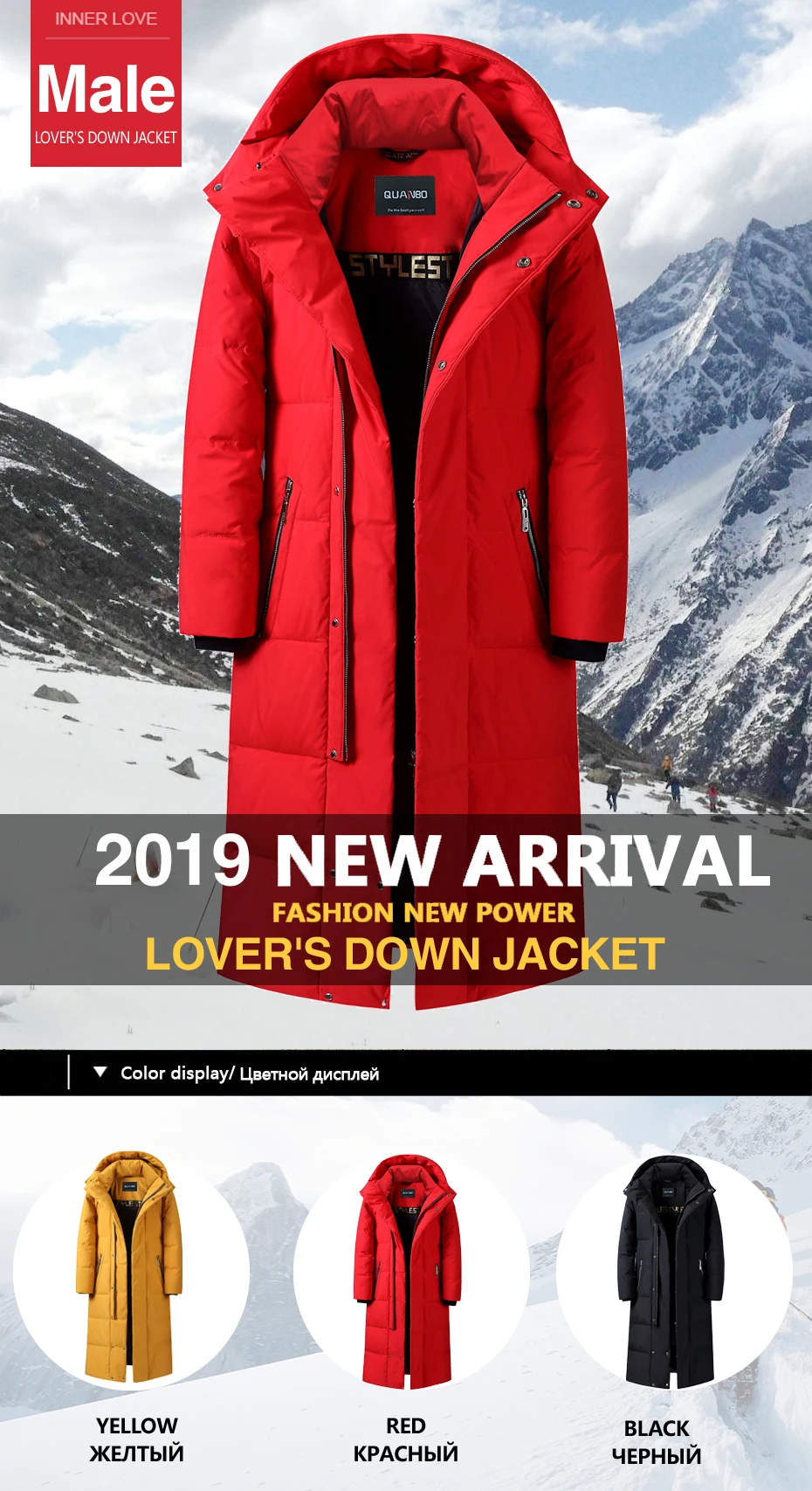 Куртка унисекс, на белом утином пуху, длинная, зимняя, утепленная, со съемным капюшоном, 2019