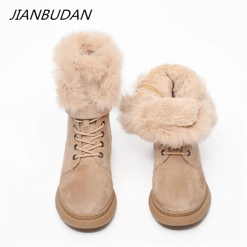 Женские замшевые сапоги JIANBUDAN, зимние сапоги до середины икры на плоской платформе, с Плюшевым Мехом, теплые, 34-43