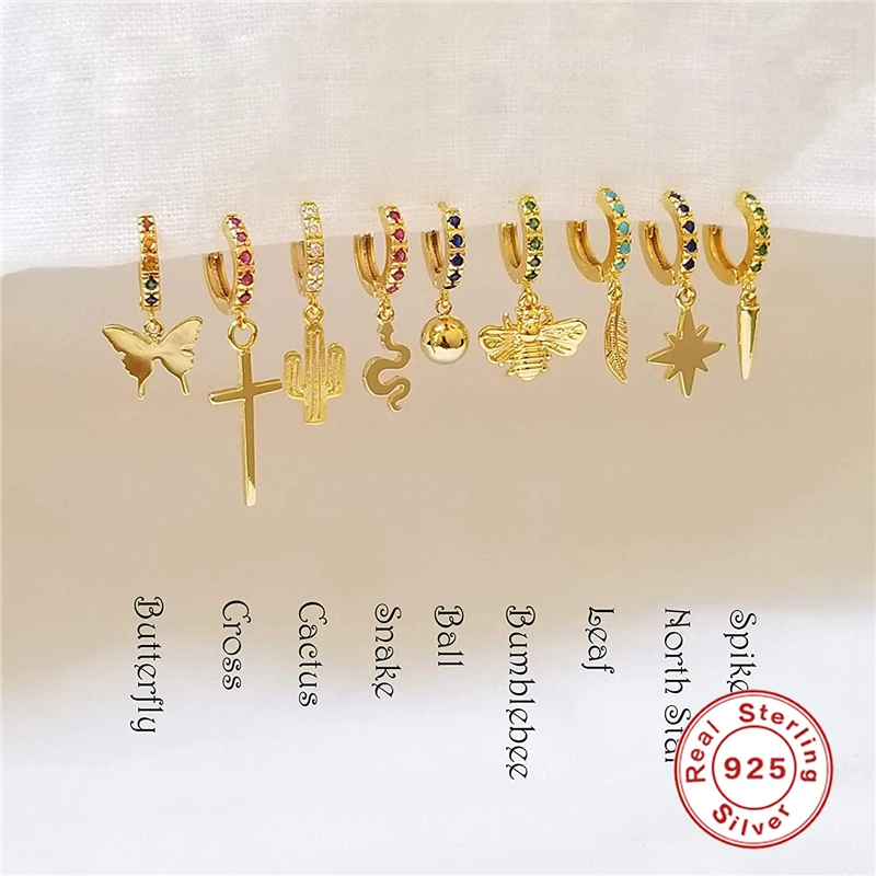 Серьги из стерлингового серебра 925 пробы, Подвесные серьги-гвоздики, серьги для женщин, Бабочка, крест, анис, звезда, подвеска в виде змеи, серьги-гвоздики