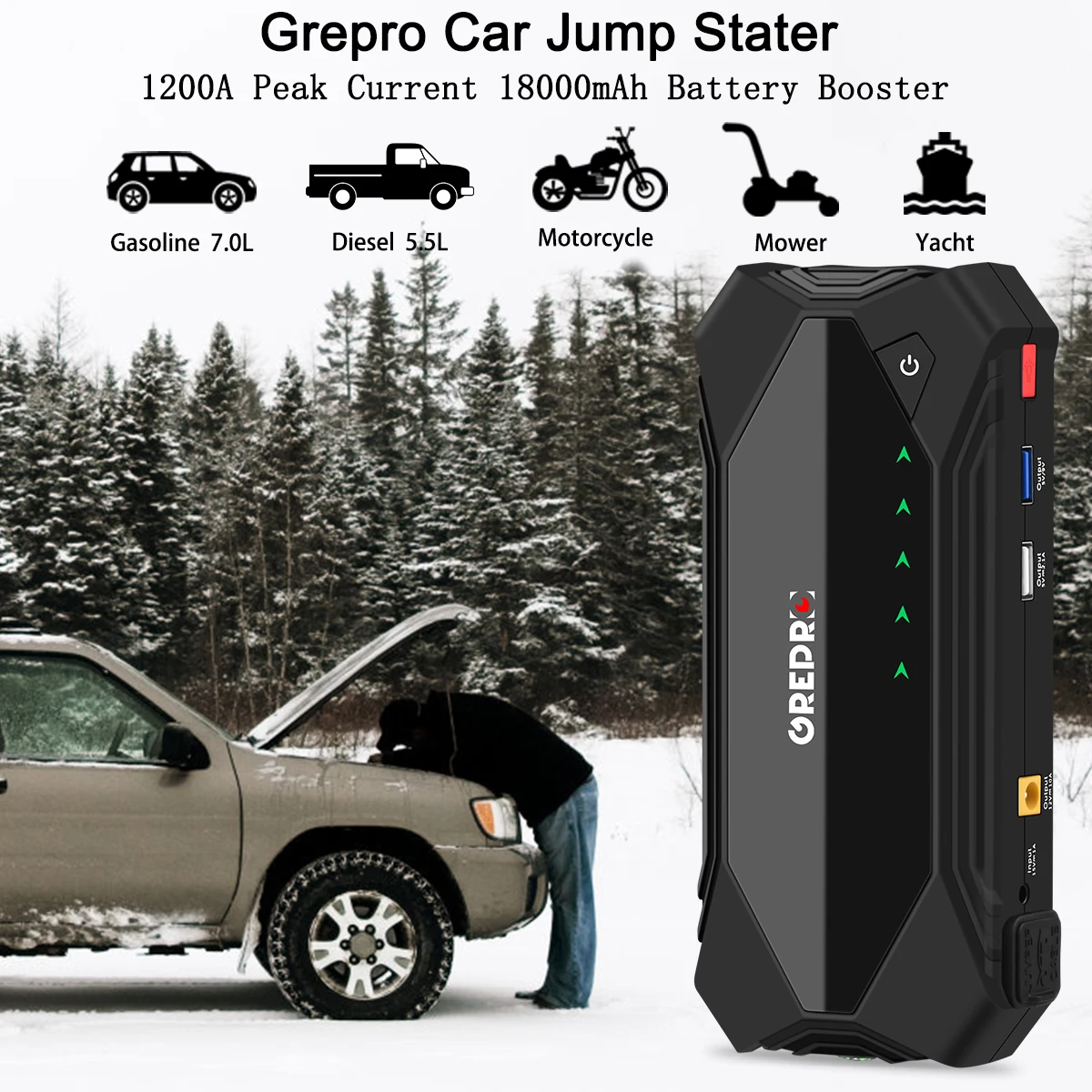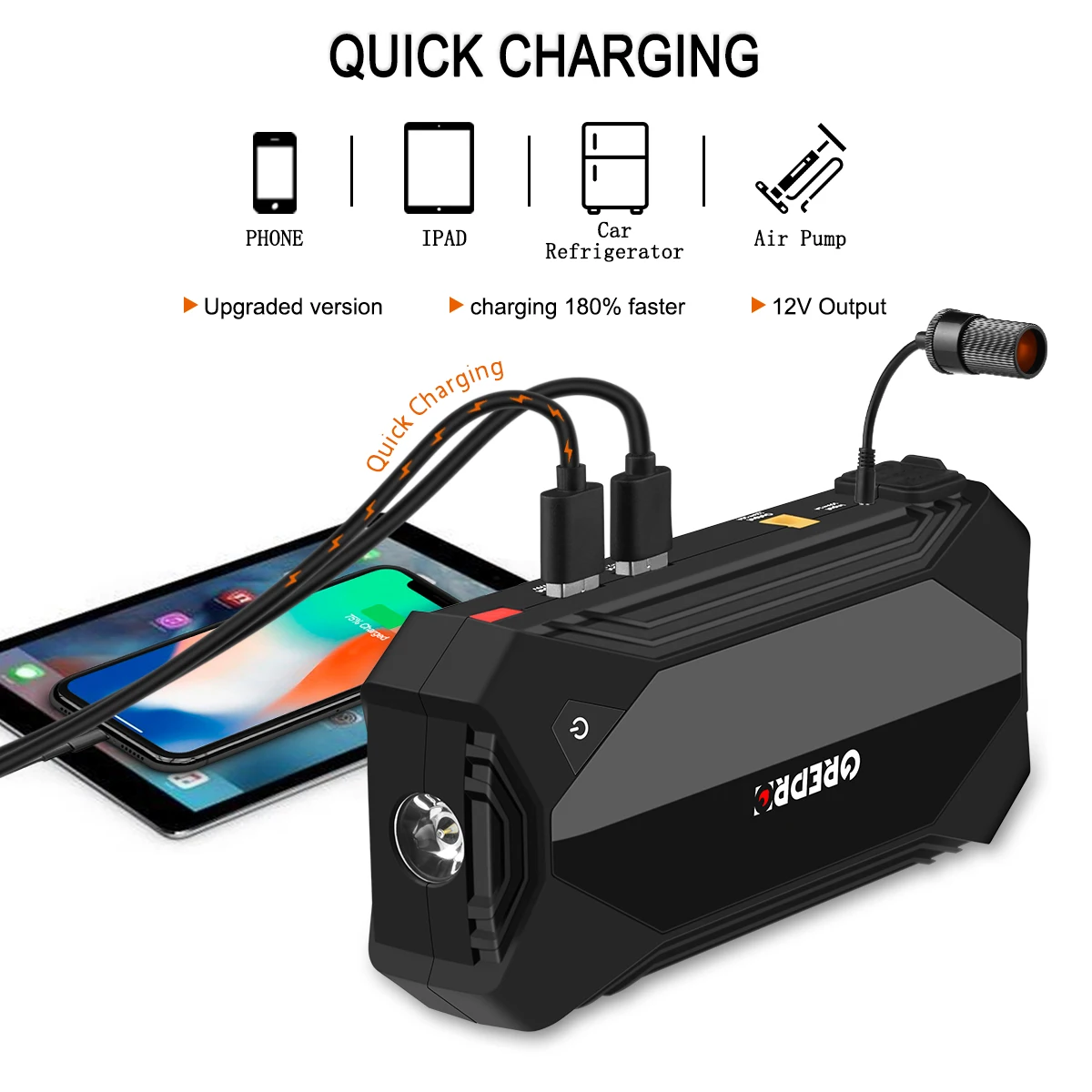 Автомобильный бустер Grepro, автомобильное пусковое устройство, автомобильное пусковое устройство 12 В, автомобильное пусковое устройство, внешний аккумулятор для автомобиля