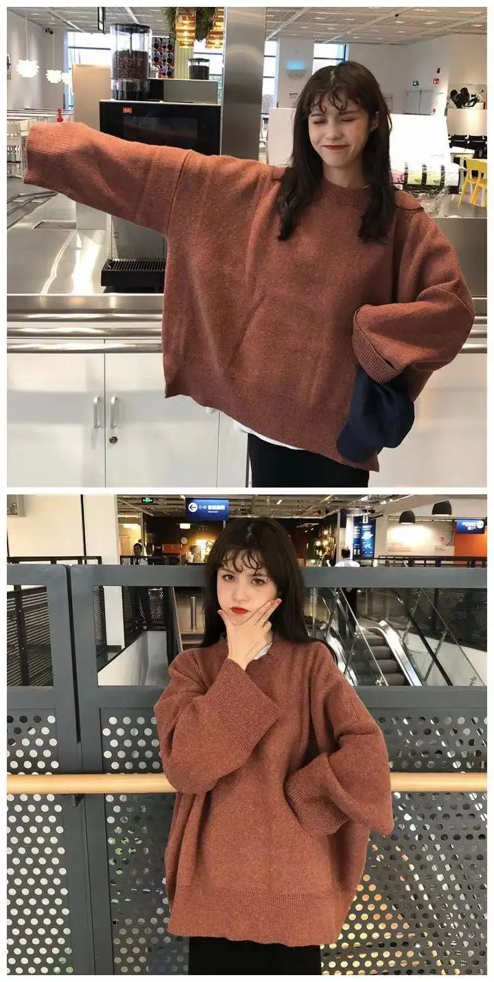 Зимний женский свитер, новинка, свитер в Корейском стиле, однотонны...
