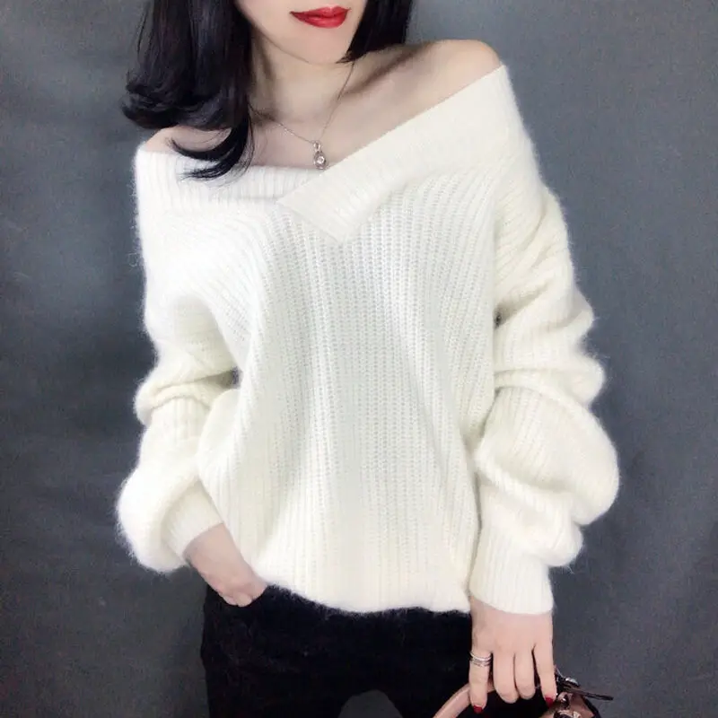 Свитер женский осенне-зимний, однотонный, с V-образным вырезом