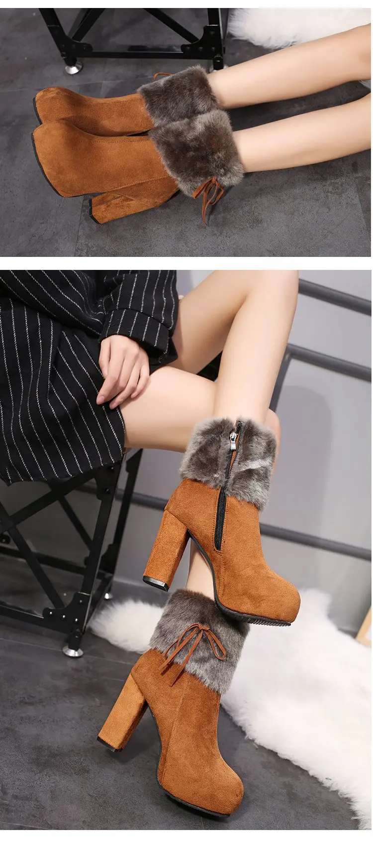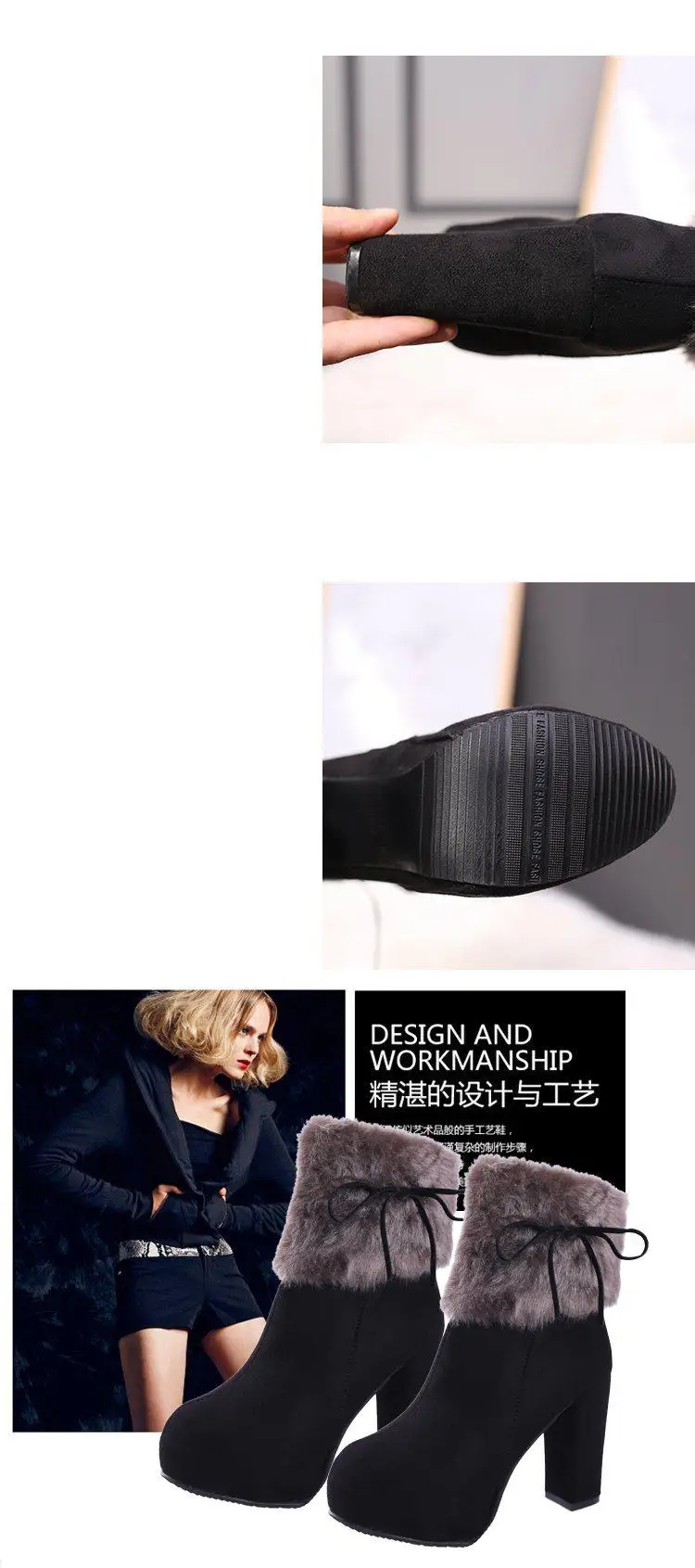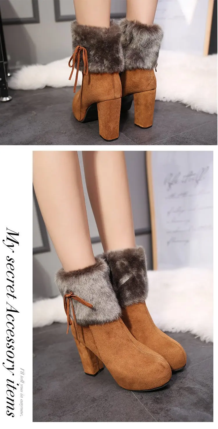 Зимняя обувь, женские сапоги на высоком каблуке, меховая теплая обу...