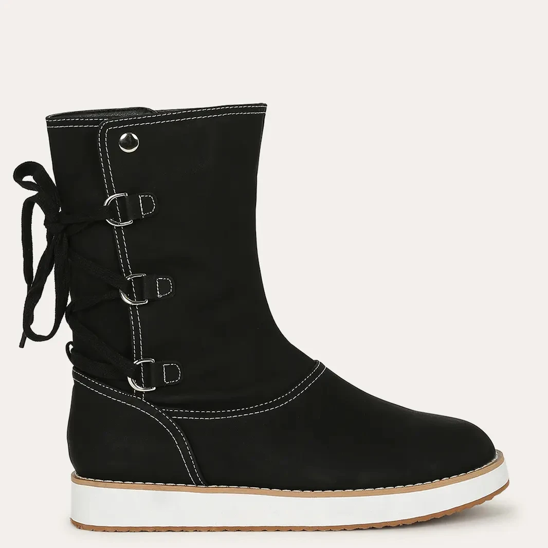 Ботинки женские зимние из искусственной кожи, на меху, с плюшевой подкладкой, со шнуровкой, теплые, большой размер, 2020
