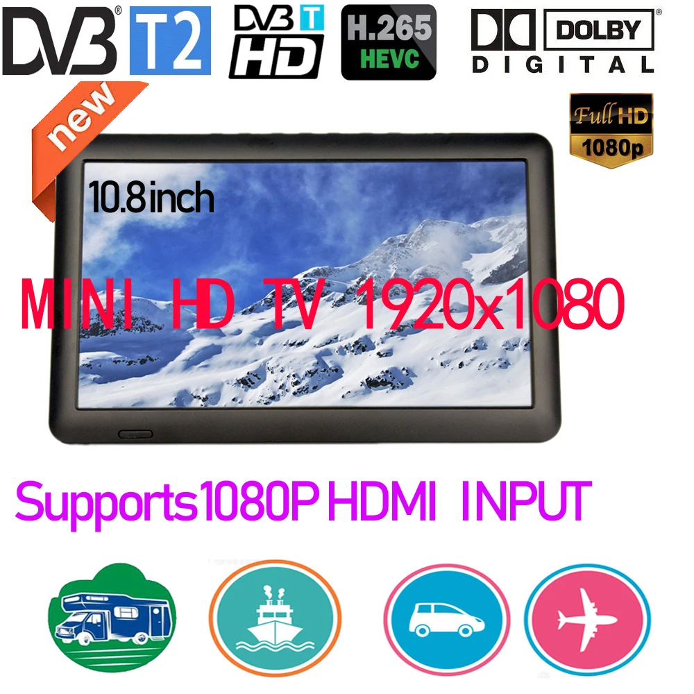 Аналоговый портативный мини-Телевизор Leadstar HD 10,8 дюйма светодиодный LED DVBT2DVBT, поддержка H265Hevc Dolby Ac3, HDMI вход для дома, автомобиля, лодки, улицы