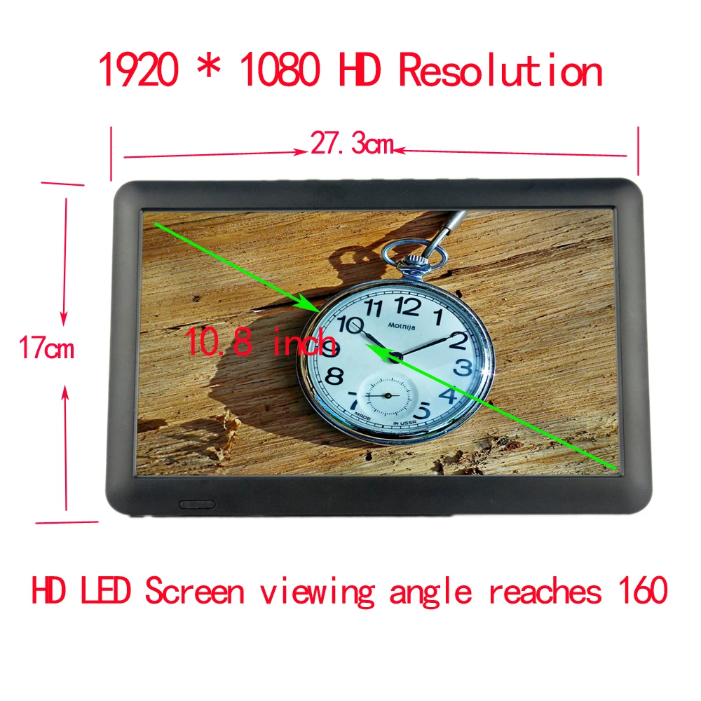 Спецификация: * Дисплей: 10,8 "цвет TFT-LED * Соотношение размеров экрана: 16:9 * Пиковая Яркость: 350 кд/Чехлы * Коэффициент контрастности: 300:1 * Угол обзора: 165 градусов * Время отклика: 8 мс * Потребляемая мощность: 18 Вт * Видеовход: PAL/NTSC или PAL/SECAM * Аудиовыход: 1 Вт * Источник питания: DC12V-1.5A Особенности: 1. Безопасный источник питания 12 В постоянного тока. 2. Поддержка входа HD1080P через разъем HDMI. 3. Воспроизведение содержимого карты памяти Micro SD. 4. С USB-разъемом Воспроизведите содержимое U-флеш-накопителя. 5. С мини-разъемом VGA, монитором используется для шт. 6. С функцией ввода и вывода AV. 7. Можно подключить к разъему наушников, не разделяя другие. 8. Литий-полимерный аккумулятор внутри.Изображения товара