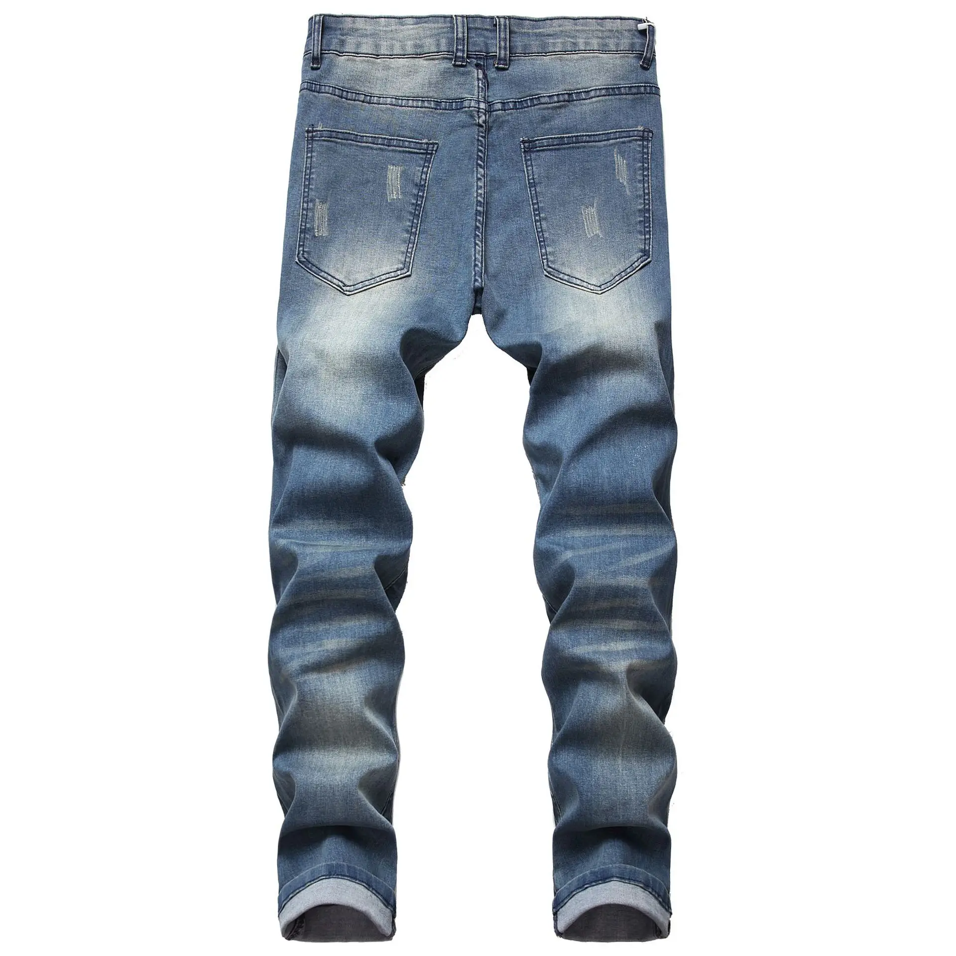 Джинсы мужские рваные, джинсовые брюки с вырезами на коленях, брюки стрейч в стиле high-street