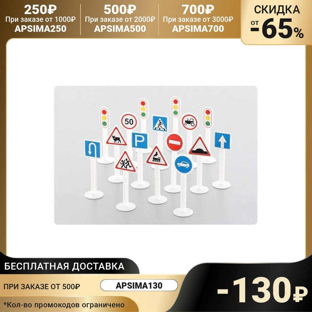 Набор дорожных знаков 1, 16 элементов, в пакете