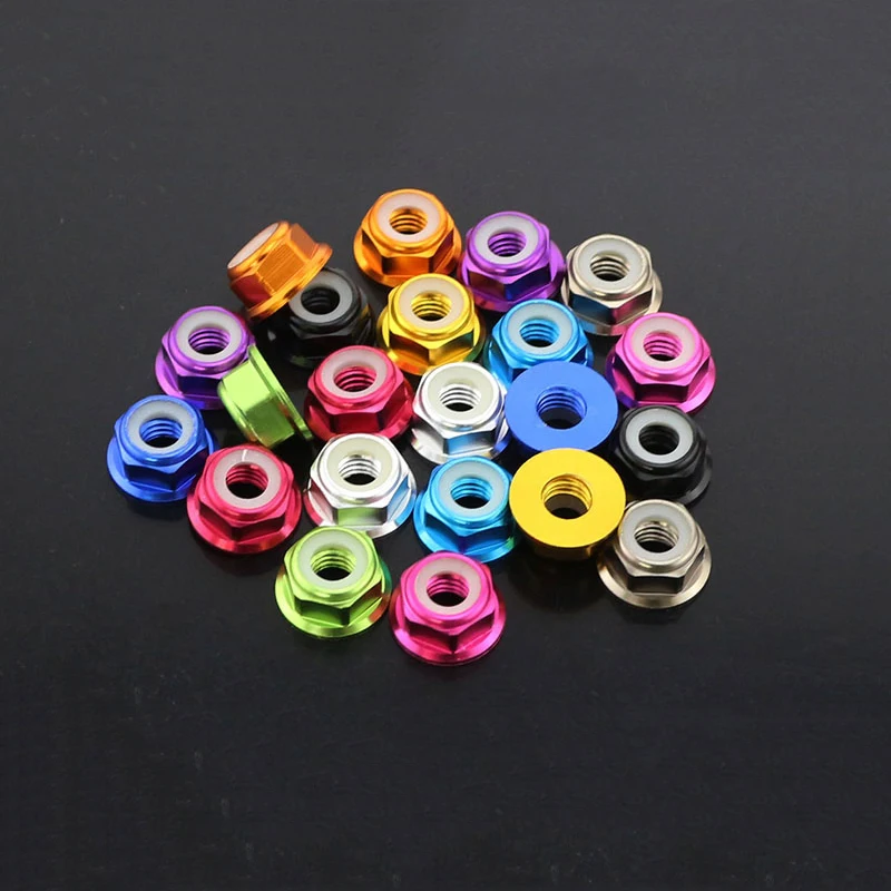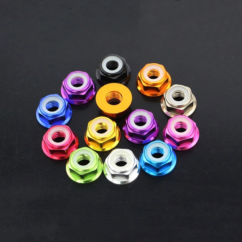 2 шт. M2 M3 M4 M5 M6 нейлоновые вставные блокировочные гайки Nyloc Шестигранная Фланцевая блокировочная гайка алюминиевая 2 мм 3 мм 4 мм 5 мм 6 мм многоцветное Анодное окисление