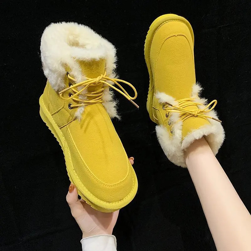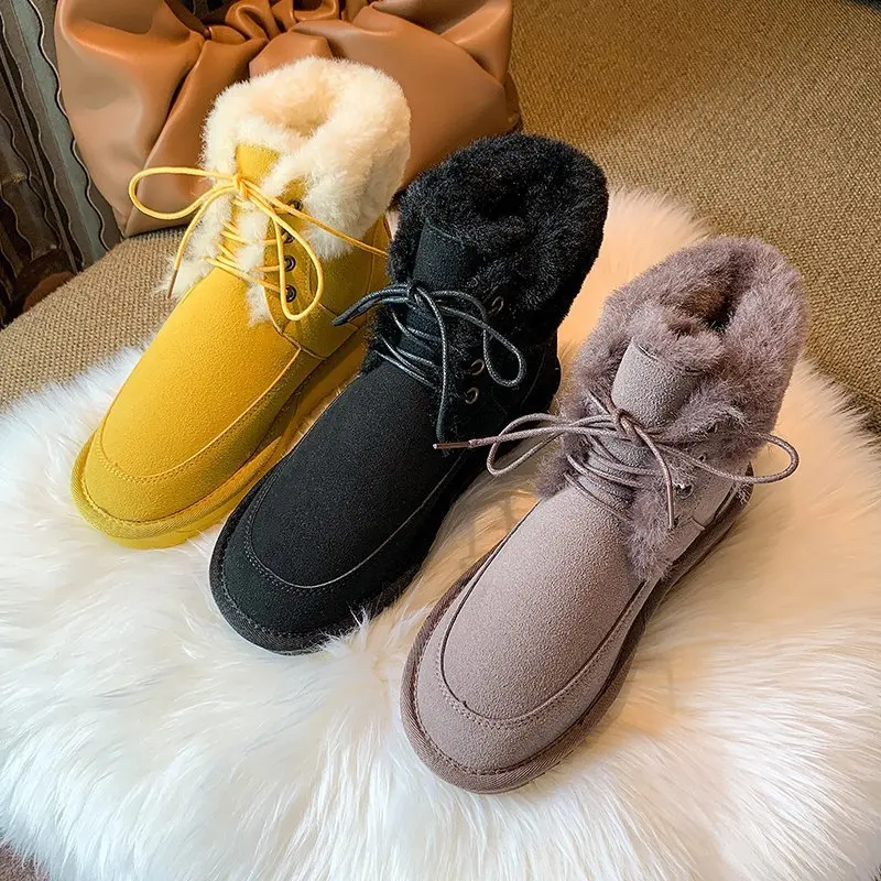 2020 однотонные зимние женские сапоги с низким верхом и круглым носком из искусственного меха, Теплые повседневные снежные сапоги, однотонные повседневные женские сапоги, женская обувь