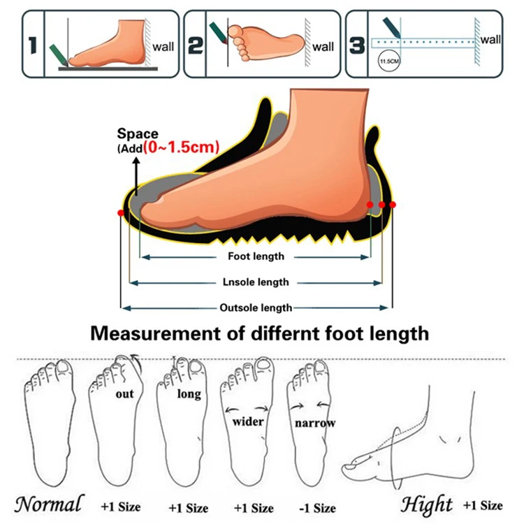 Размер, который вы выбираете,-это размер США при заказе, а не размер Великобритании! Найдите правильный размер: 1. Пожалуйста, выберите размер в соответствии с длиной Вашей стопы. 2. Если ваша стопа шире или толще, выбирайте на размер больше. 3. Мы отправляем размер согласно размеру ЕС, а не размеру США. 4. Поскольку измерения выполнены вручную, возможны отклонения на 1-2 см. 5. Если вы не уверены в правильном размере, свяжитесь с нами.