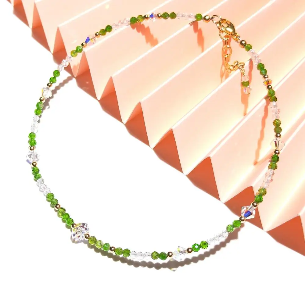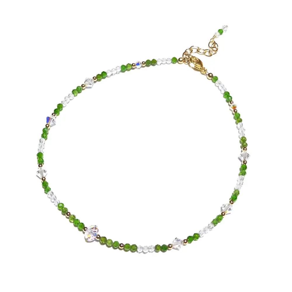 Lii Ji мини камень австрийский кристалл 14K позолоченный браслет на щиколотке Длина: 24 + 5 см Размер камня: 2 мм