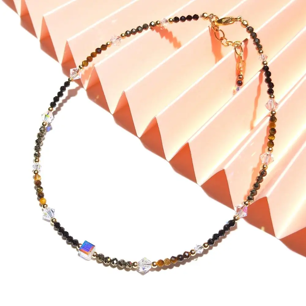 Lii Ji мини черная шпинель с австрийским кристаллом ожерелье из бис...