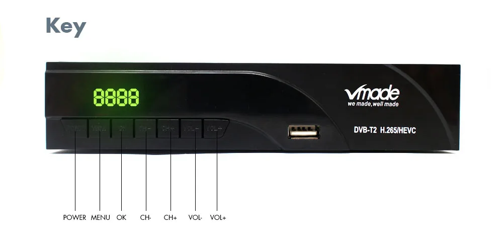 -Поддержка подключения: HDMI выход (1080P), коаксиальный, RF вход и выход, USB порт,