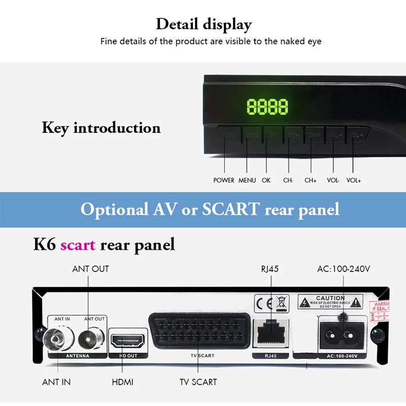 DVB-T2 K6 DVB-T2H.26510 бит HEVCЦифровой HD наземный ТВ приемник поддерживаетDolbyDVB T2 T MPEG-2 ТВ-тюнер, Поддержка dolby ac3 аудио.