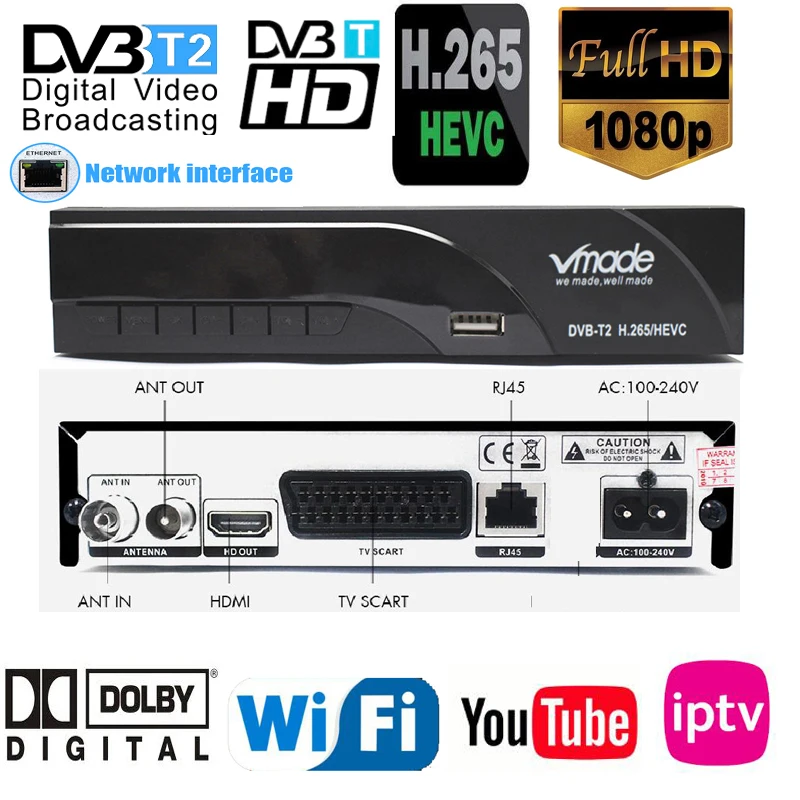 Покупатели, пожалуйста, убедитесь, что вы выбрали телевизионную коробку H265/Hevc версии DVB-T2, в этих странах цифровой сигнал использовал код H265, если вы все еще выбираете версию H264, экран телевизора будет черным экраном, без изображения, мы также рекомендуем покупателям из других стран ЕС выбрать версию H265, потому что код H265 Тенденция развития цифрового телевидения, например, Франция, Испания, Италия, Австрия, эти страны HD ТВ-каналы используют dolby audio, если вы выбираете обычный DVB-T2 или DVB-T ТВ-бокс, некоторые HD каналы не будут звучать, В то время вы должны выкинуть обычный телевизор.