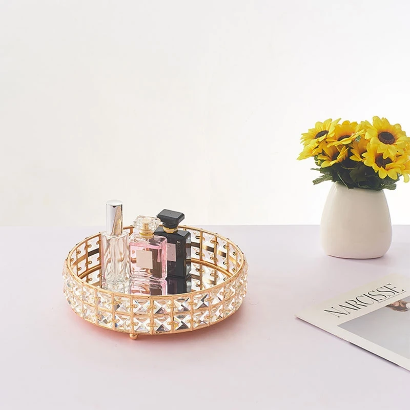 Зеркальный поднос для парфюмерии косметический поднос с украшением в виде кристаллов бусины органайзер для ювелирных изделий с козырьком, декорированные