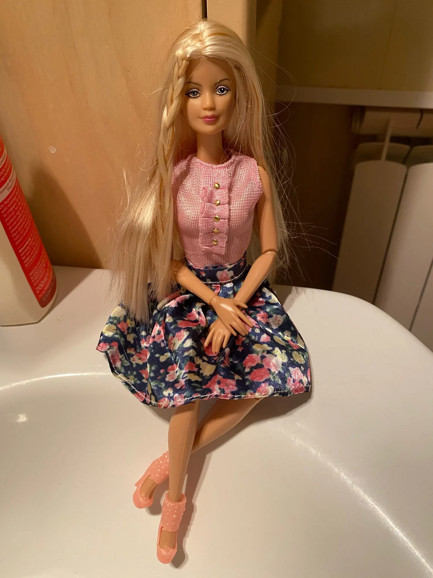 Спасибо! Голова хорошая, ровная, симпатичная рисовка под молд маки, штамп сзади что сделано в Китае, наверное не маттел, но даже если и не он, то очень качественный, как старый маттел)) Волосы как у старых барби маки типа ловин хорс - мягкие и воздушные. Тон резины сероватый, сядет на какую-нибудь софию карапуз или йогу розовый топ первой волны.