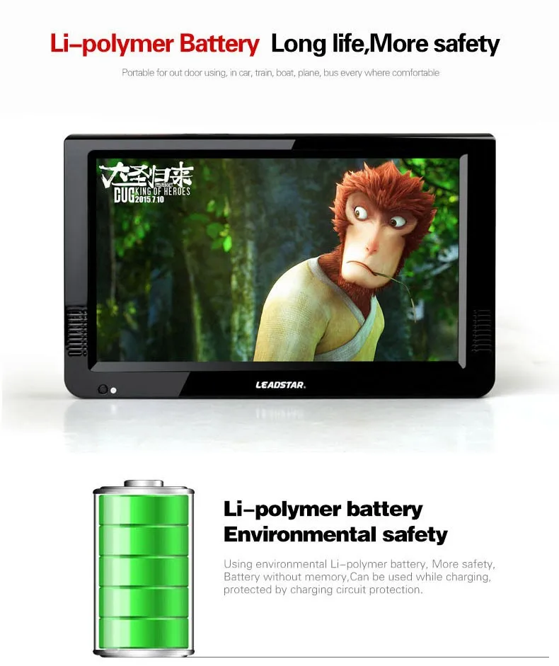 Аналоговый портативный мини-Телевизор Leadstar, 10 дюймов, DVBTDVBT2 и поддержка H265Hevc Dolby Ac3, HDMI вход для использования дома, в машине, на лодке