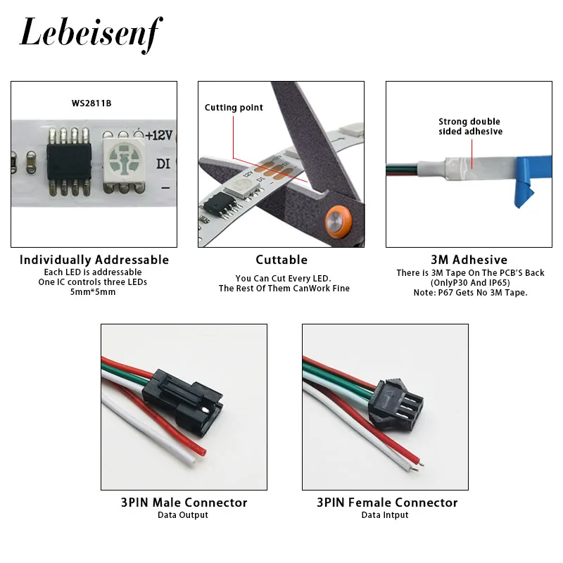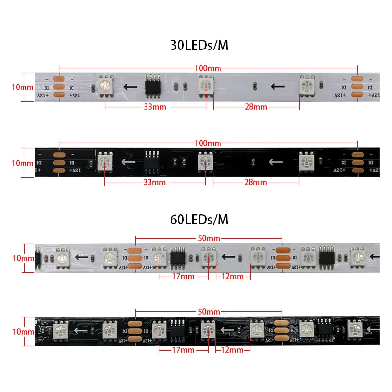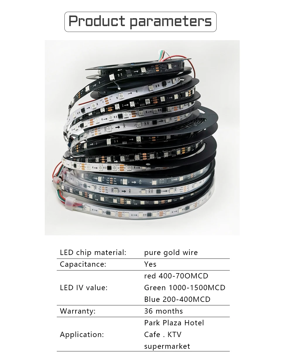 Каждый 0,5 метров с Паяные соединения, пожалуйста, обратите внимание!Цвет печатной платы:Белый: белый PCB; Черный: Черный PCBКласс защиты:(1) IP30 --- не водонепроницаемый для использования в помещении(2) IP65 --- силиконовое покрытие, Легкая резка, уличное использование(3) IP67 --- силиконовая трубка, требуется повторное запечатывание после резки, уличное использование(4) IP68 --- IP65 + IP67, может работать под водой (если вам нужно, мы можем сделать это для вас!)Параметры продукта:(1) Рабочее напряжение: 12 В постоянного тока