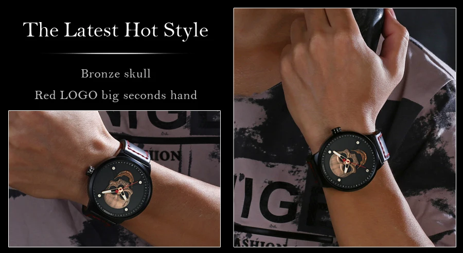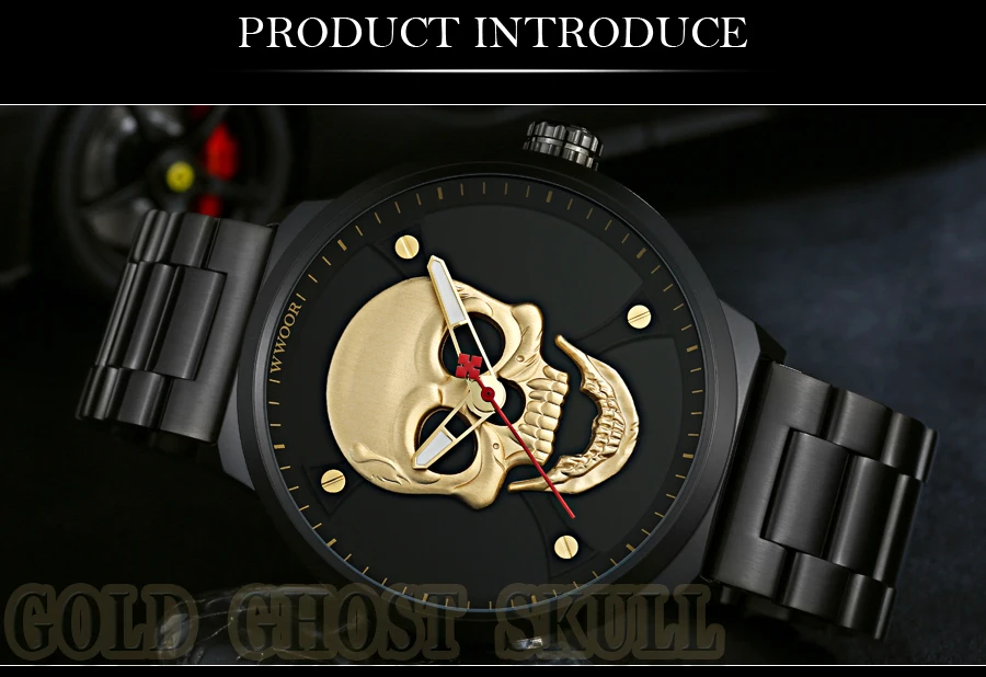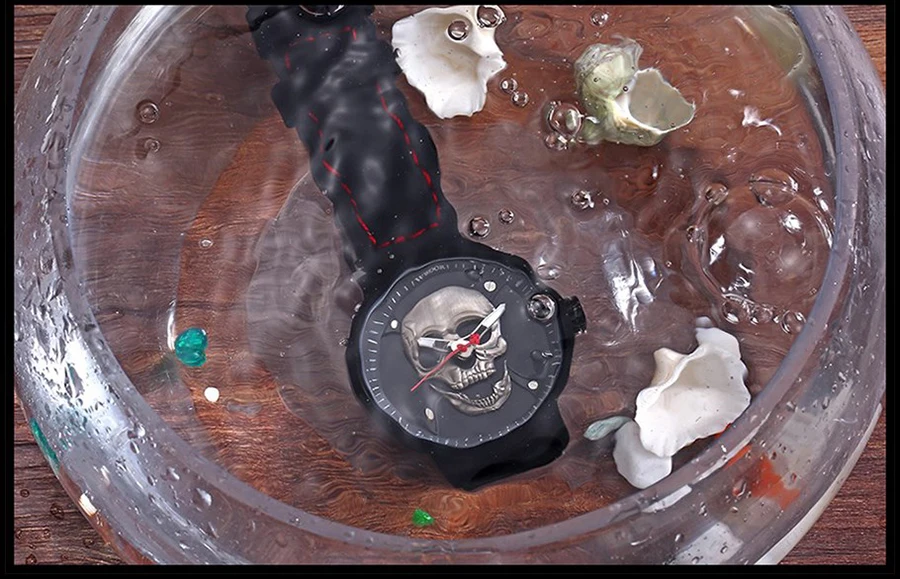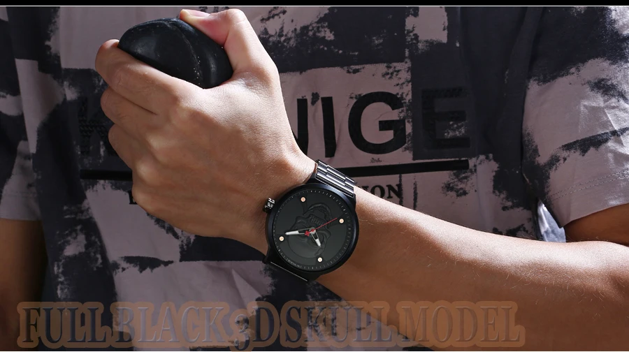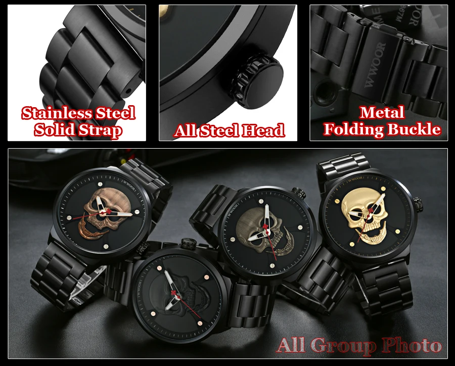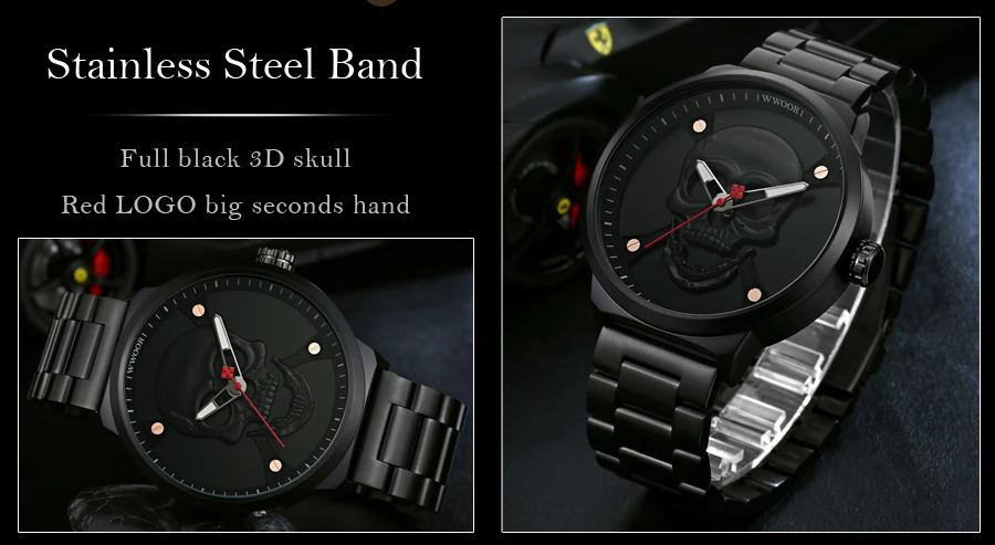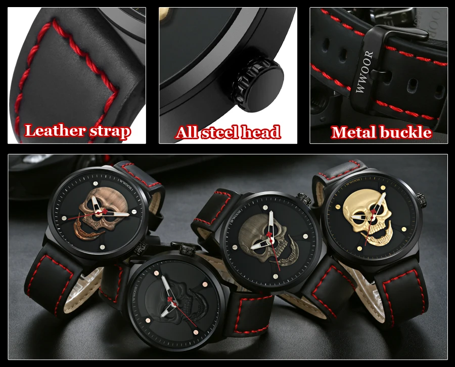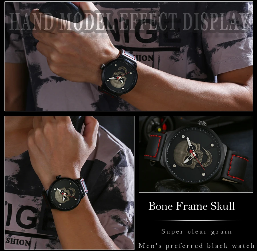 Часы WWOOR Мужские кварцевые в винтажном стиле, официальный бренд, спортивные с 3d-изображением черепа из нержавеющей стали