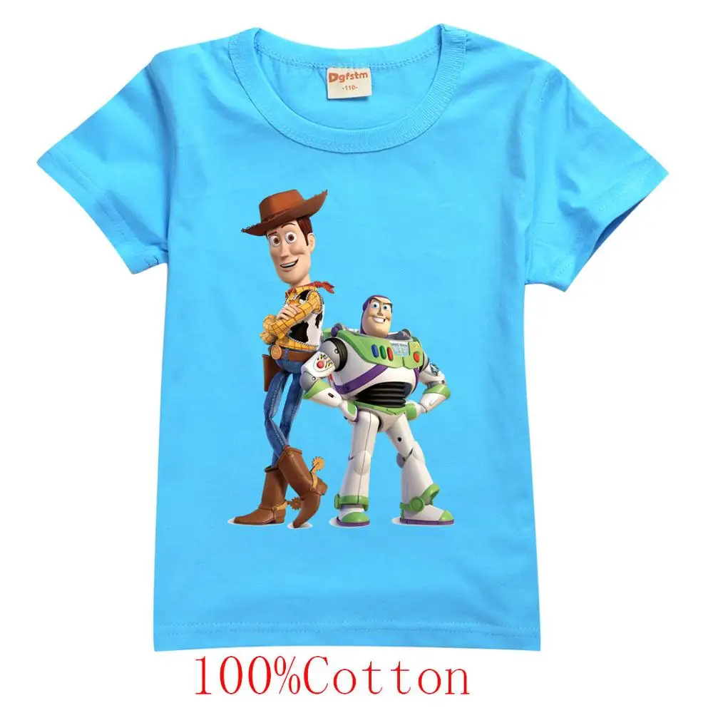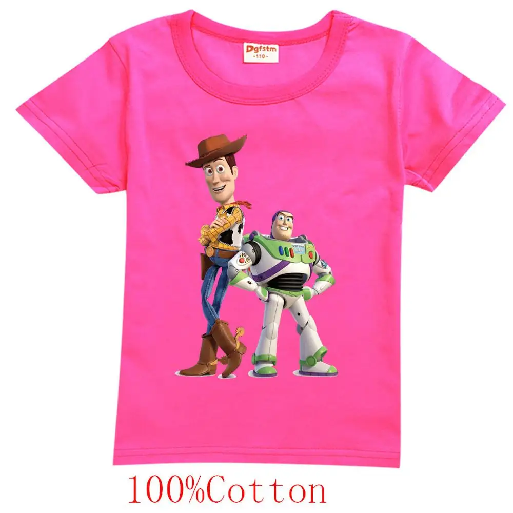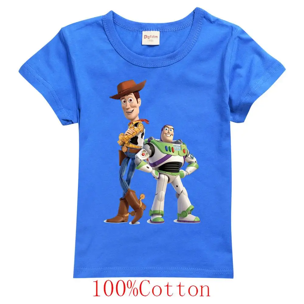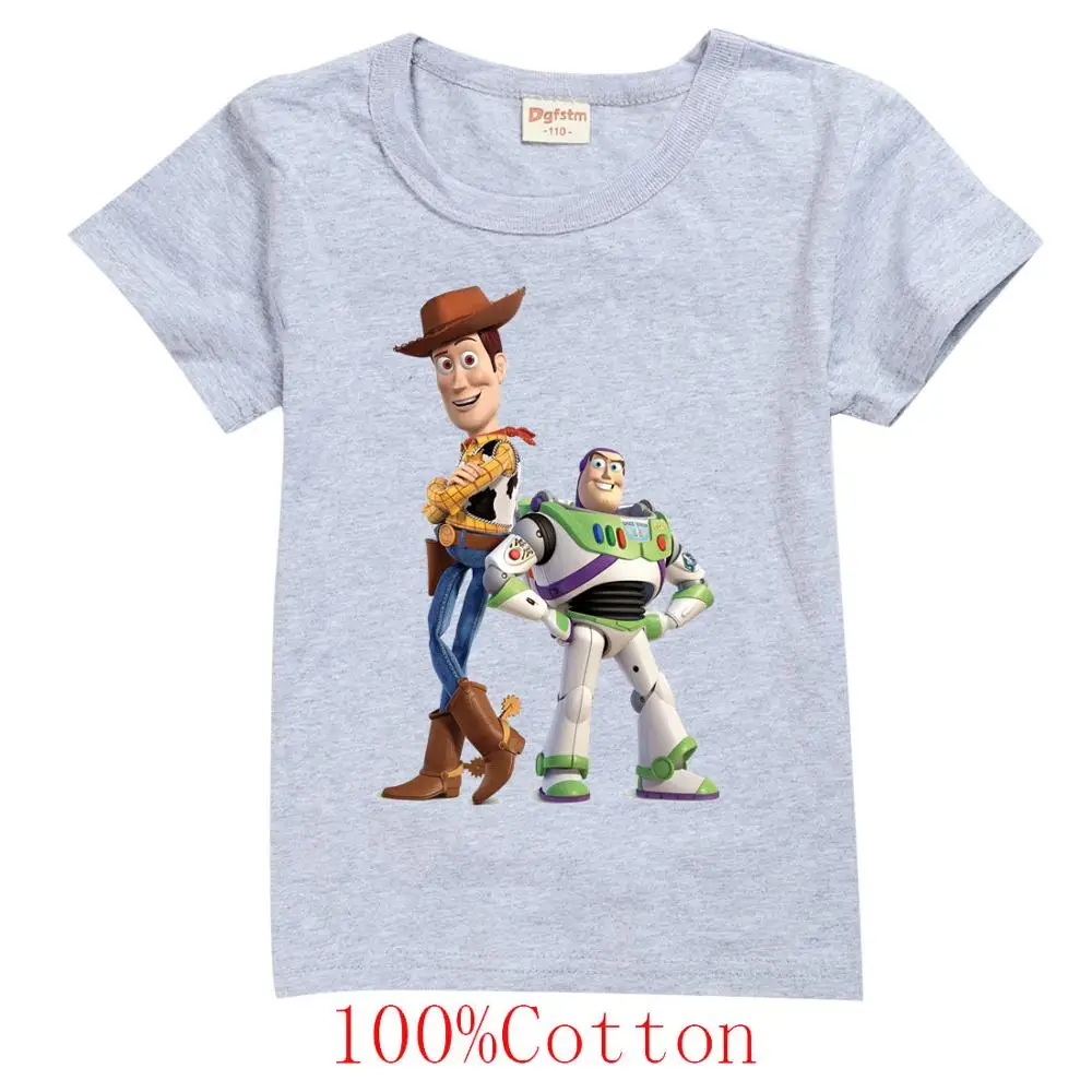 Disney футболка с рисунками героев мультфильмов для мальчиков и девочек, летние короткие футболки стандартного мультфильма История игрушек, 4 хлопковые белые футболки, не требующей горячей продажи